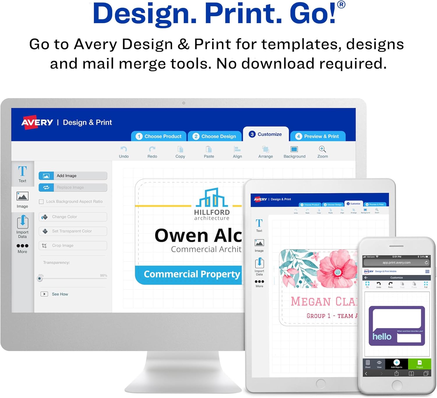 Avery Flexible Printable Name Tags, 2-1/3" x 3-3/8", Matte White, 400 Removable Name Badges for Laser and Inkjet Printers (5395)