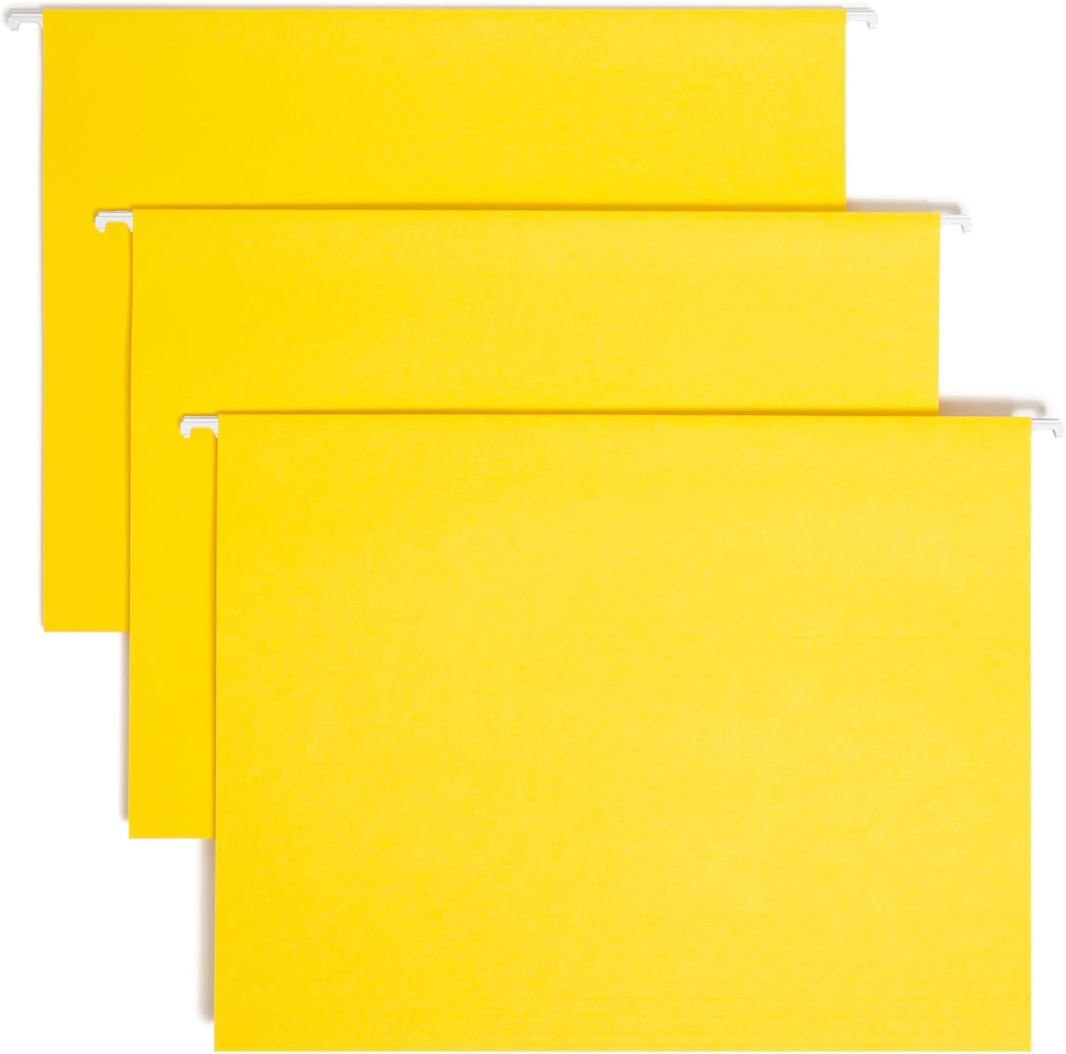 Smead Standard Hanging File Folders, 25 Count, Yellow, 1/5-Cut Adjustable Tabs, Letter Size (64069)