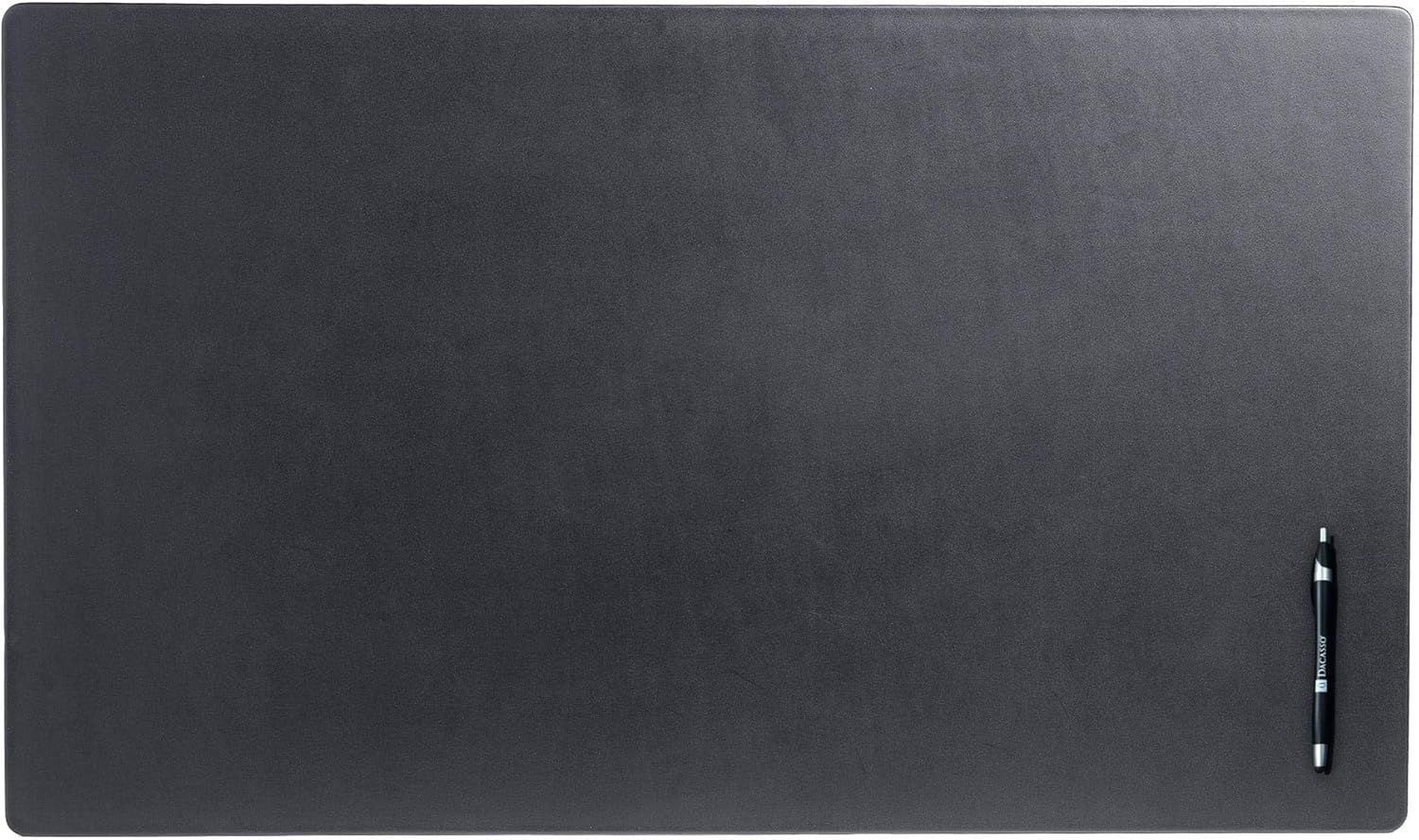 - LUXURY ADDITION TO THE OFFICE SETTINGS: Give your desk some personality with this great top-grain leather pad! Featuring a clean, open work space and luxurious writing surface, this black leather desk pad enhances both form and function in your office. Built with a rigid internal core and gentle felt backing, this durable 34"x20" desk pad adds a buffer between your expensive furniture and the marks and scratches of daily use. The sleek, rail-less design is elegant and classic, and the rich black color adds warmth to any office setting.