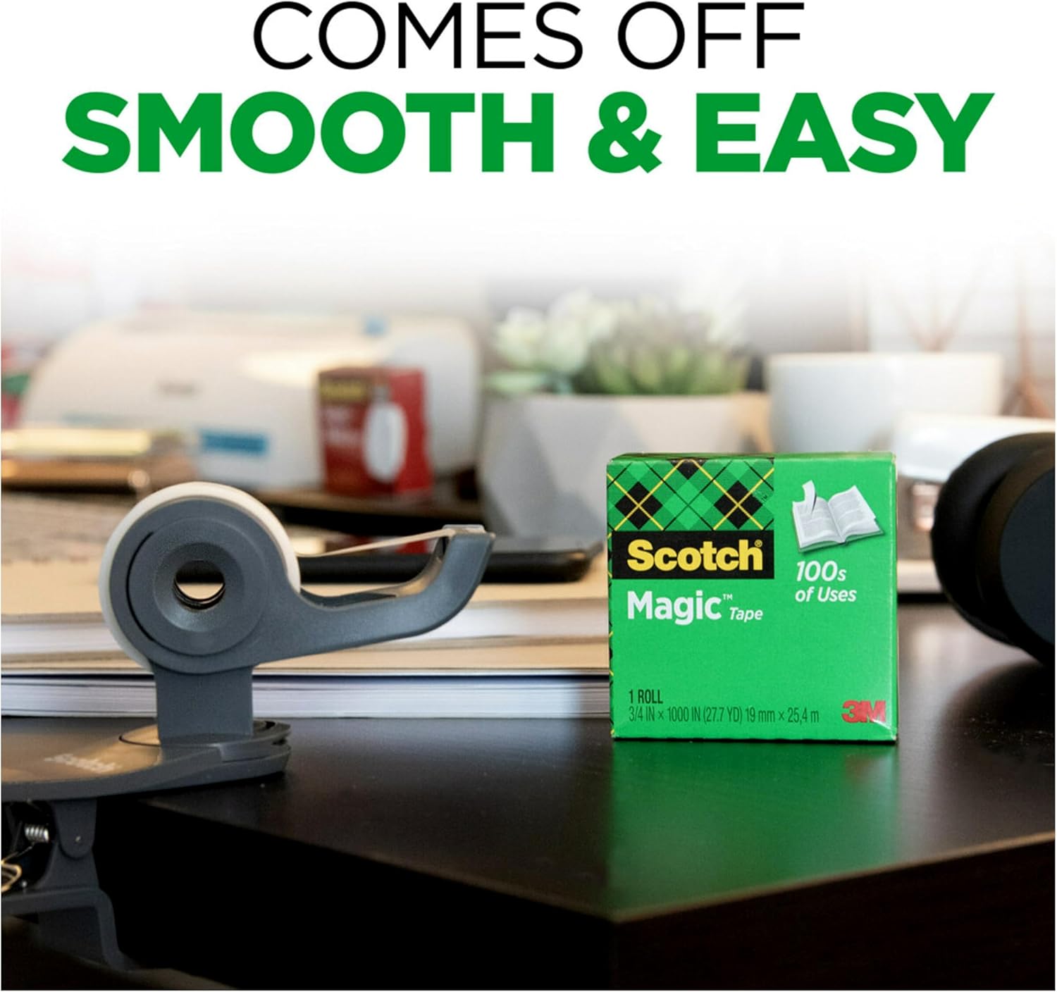 - INVISIBLE TAPE: 12 rolls of Scotch Magic Tape mends rips and tears securely, permanently and invisibly
