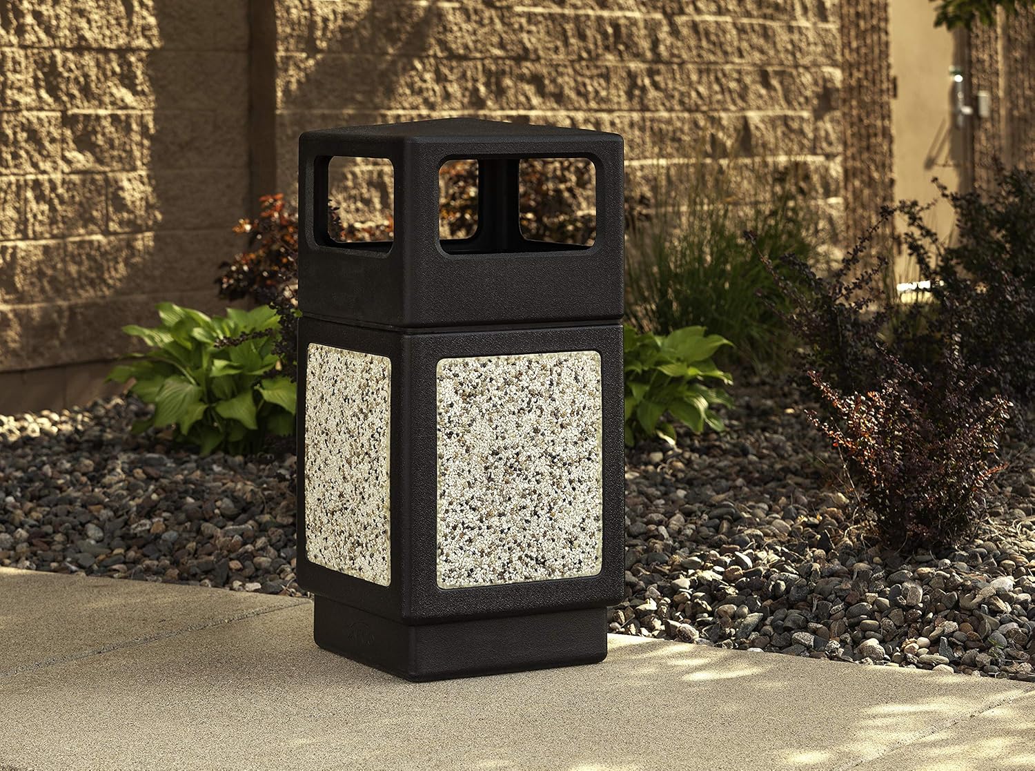 Safco Canmeleon Trash Can, 38 Gallons, Indoor and Outdoor Use, Durable & Weather-Resistant Commercial Garbage Can with Stone Panels, Black