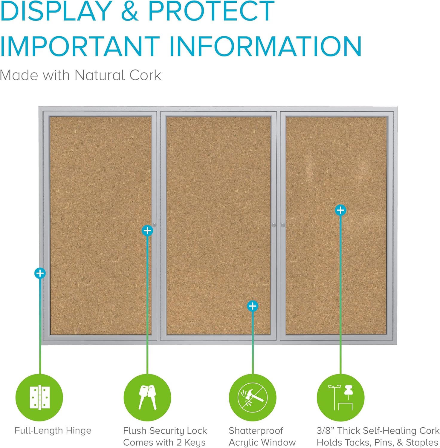 - SECURE YOUR DOCUMENTS: With this locking bulletin board, the doors feature full-length hinges, flush mount locks, and keys for added security