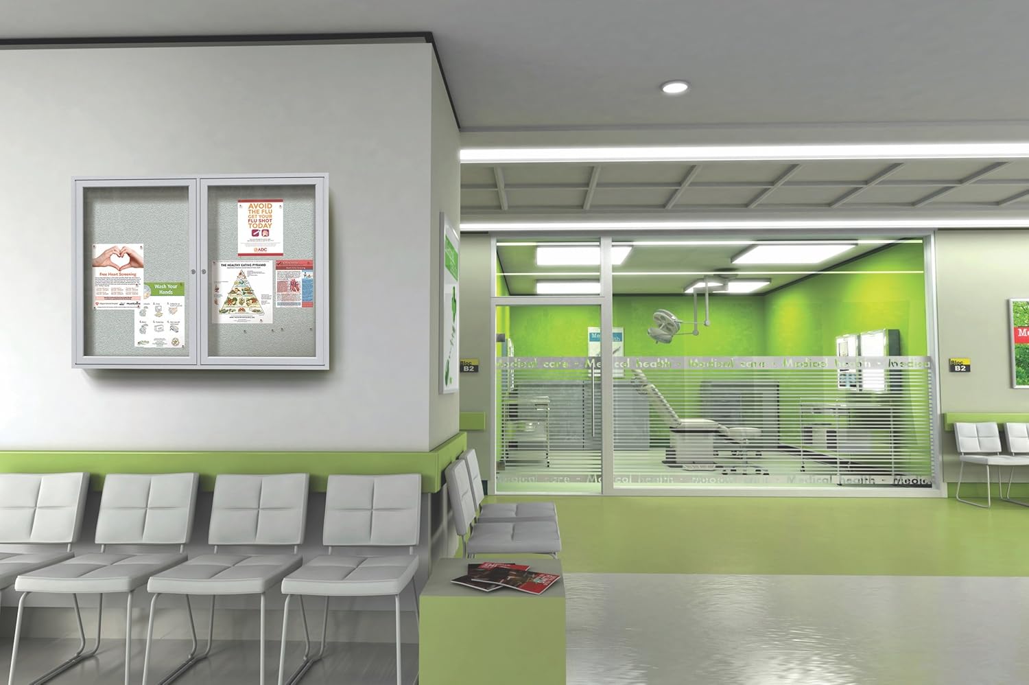 Ghent 36"x48" 2-Door Outdoor Enclosed Vinyl Bulletin Board, Shatter Resistant, with Lock, Satin Aluminum Frame - Ivory (PA23648VX-185 ), Made in the USA
