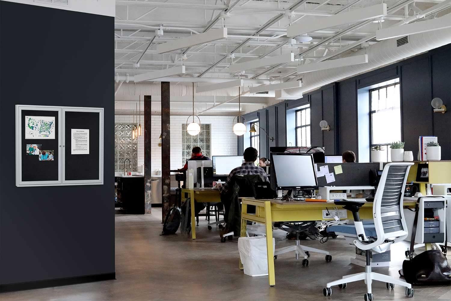 Ghent 36"x36" 1-Door indoor Enclosed Recycled Rubber Bulletin Board, Shatter Resistant, with Lock, Satin Aluminum Frame,Black (PA13636TR-BK) ,Made in the USA