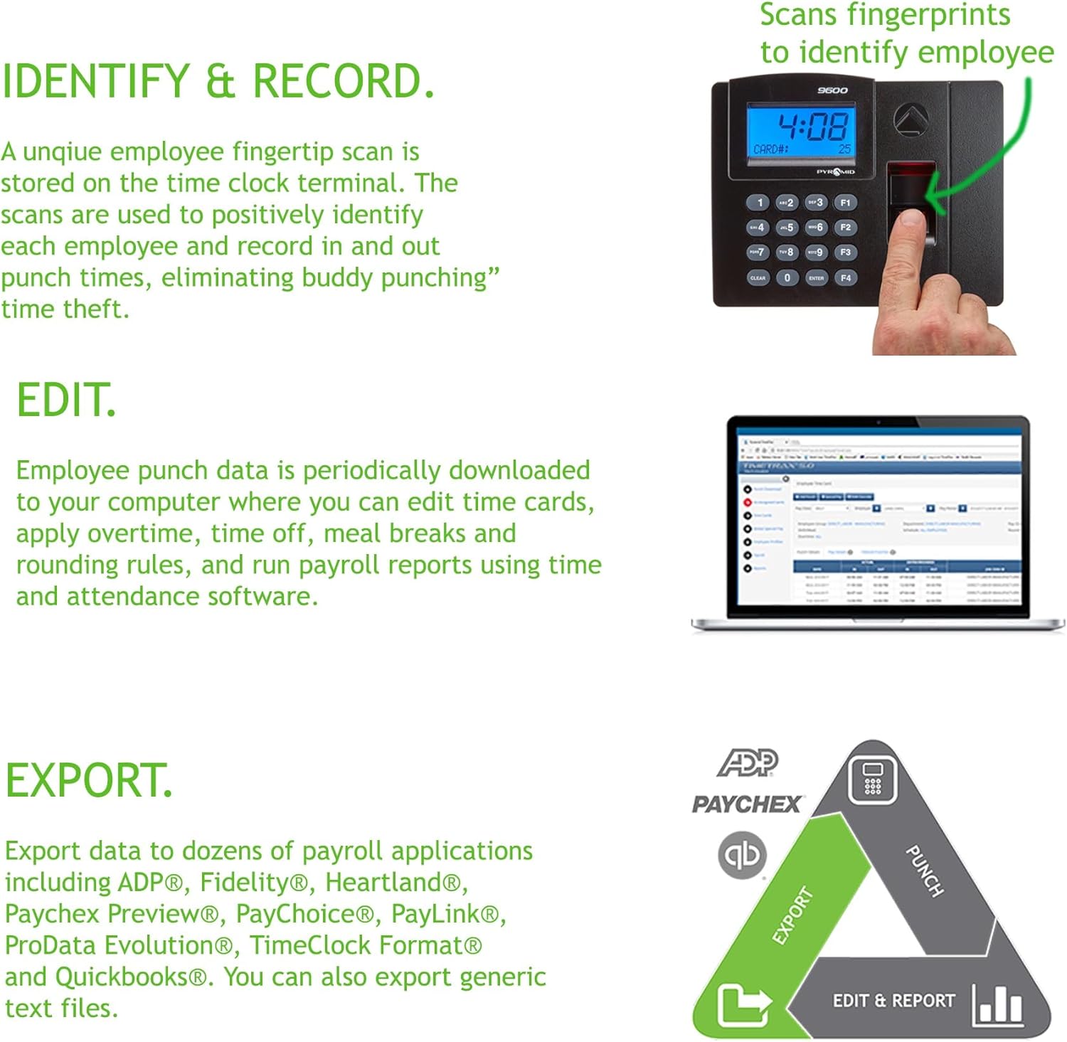 Pyramid Time Systems - Pyramid TimeTrax Elite [TTELITEEK] Automated Biometric Fingerprint Time Clock for small Business, Employee In/Out Time Tracker with Software Download, Windows Compatible - Black