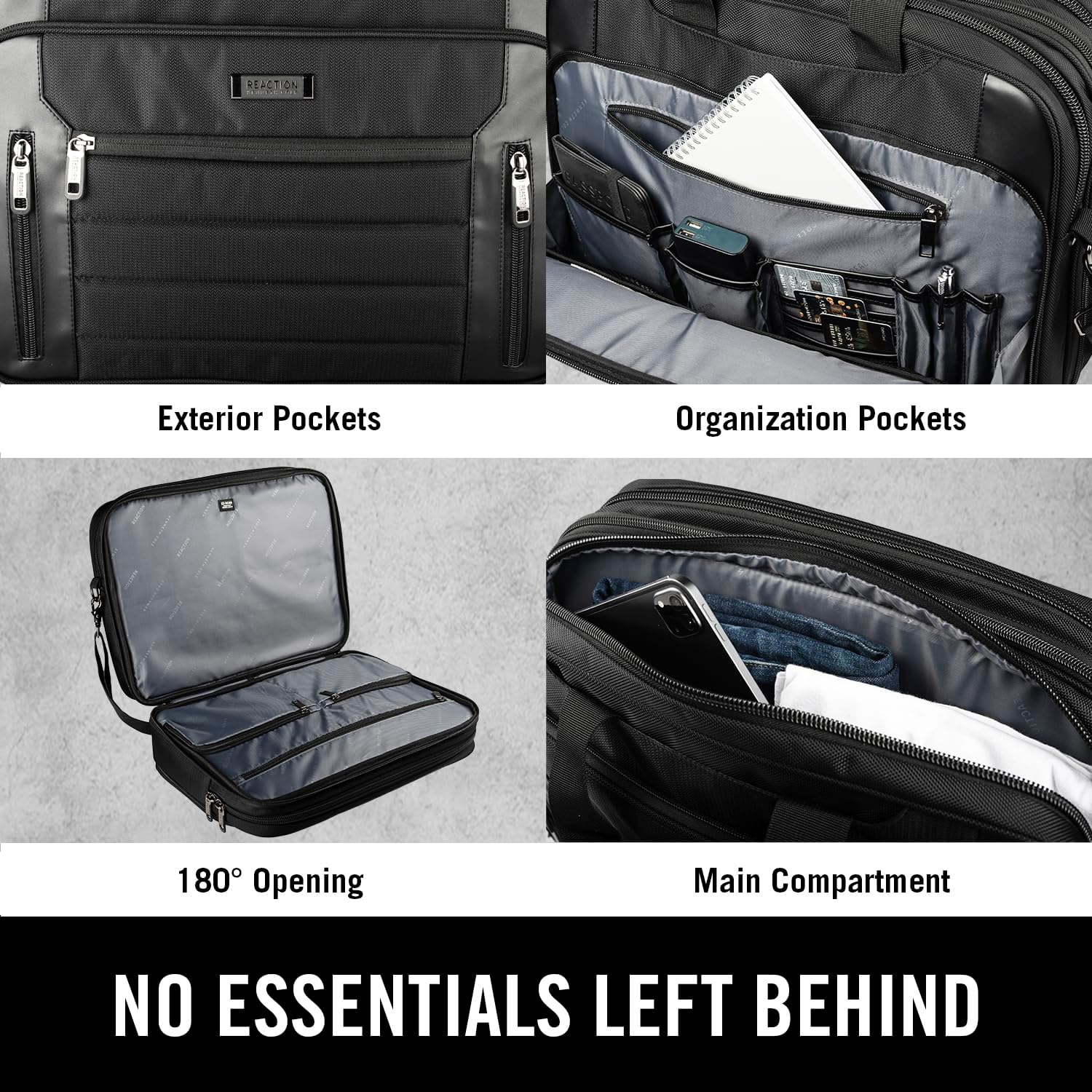 Kenneth Cole Reaction Keystone 1680d Polyester Dual Compartment 17" Laptop Business Portfolio, Black