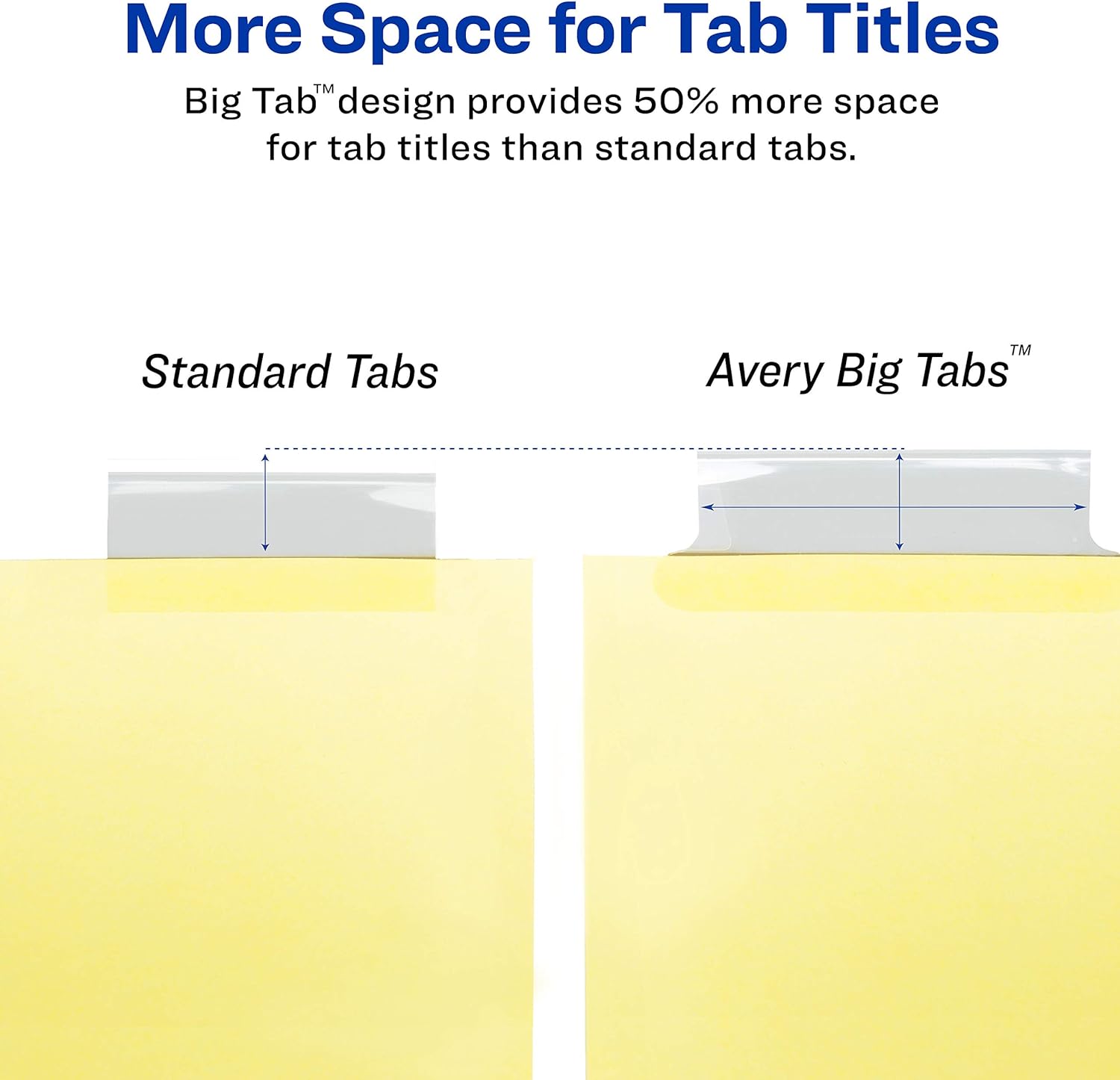 - Big Tabs are easy to see and provide 50% more writing space than standard divider tabs