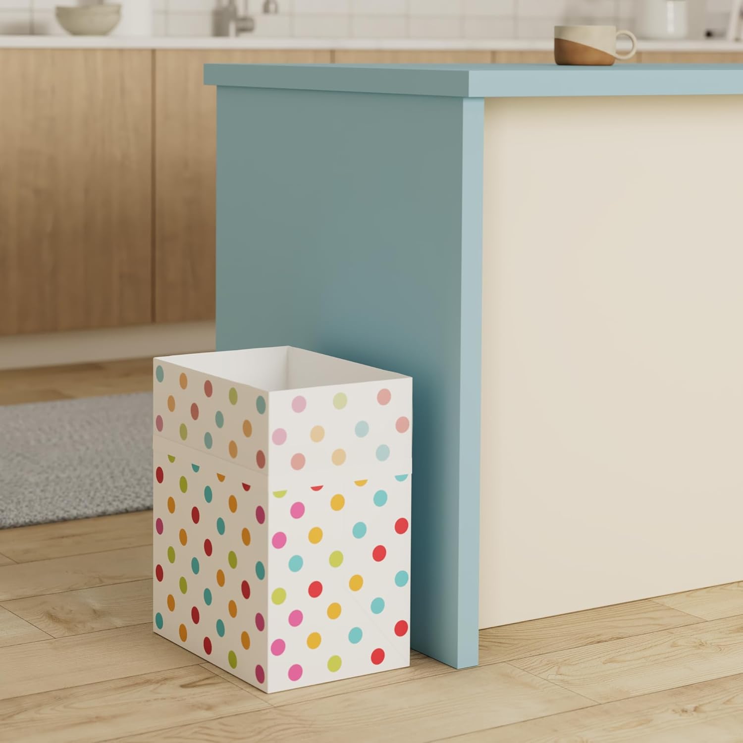 | 13 Gallon Disposable Trash Cans (3-Pack) with Fitted Trash Bags - Reusable Garbage and Recycling Bins for Parties, Events, and More (Polka Dot - 17" Height x 13.5" Width x 10" Depth)