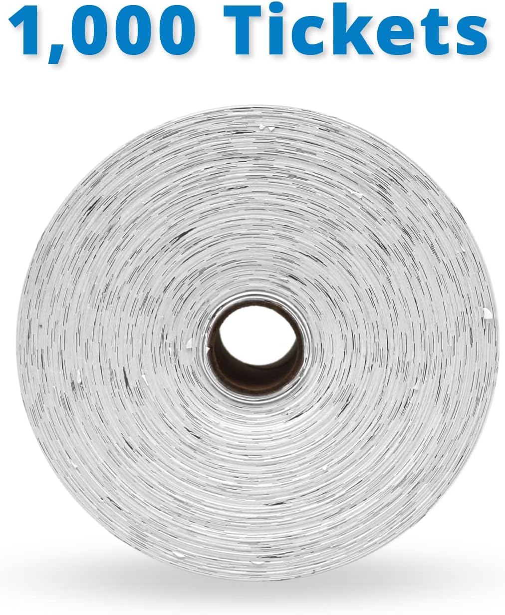 INDIANA TICKET CO. 1,000 White Raffle Tickets Double Roll, Premium Quality 50/50 Raffle Tickets, Tickets for Events, Carnivals, Door Prizes, Drinks and More