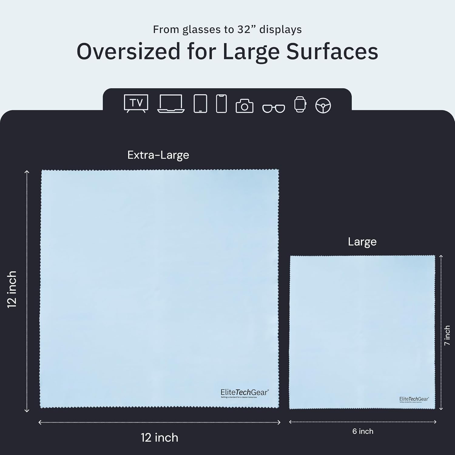 Elite Tech Gear 4-Pack Microfiber Cloth Set - 12"x12" Oversized Washable & Durable Wipes for Glasses, Lenses, Electronics & Screens - Glasses Cleaner Cloth