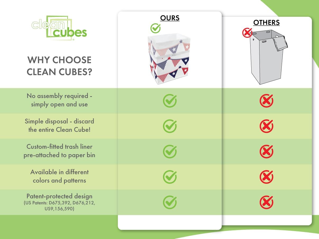 - ✅【EFFORTLESS CLEANUP & DISPOSAL】Simply unfold, use, and toss — keep your event clean and mess-free without extra effort. Clean Cubes are disposable recycling bins and trash cans with a patent-protected design and custom-fitted trash liner in each bin.