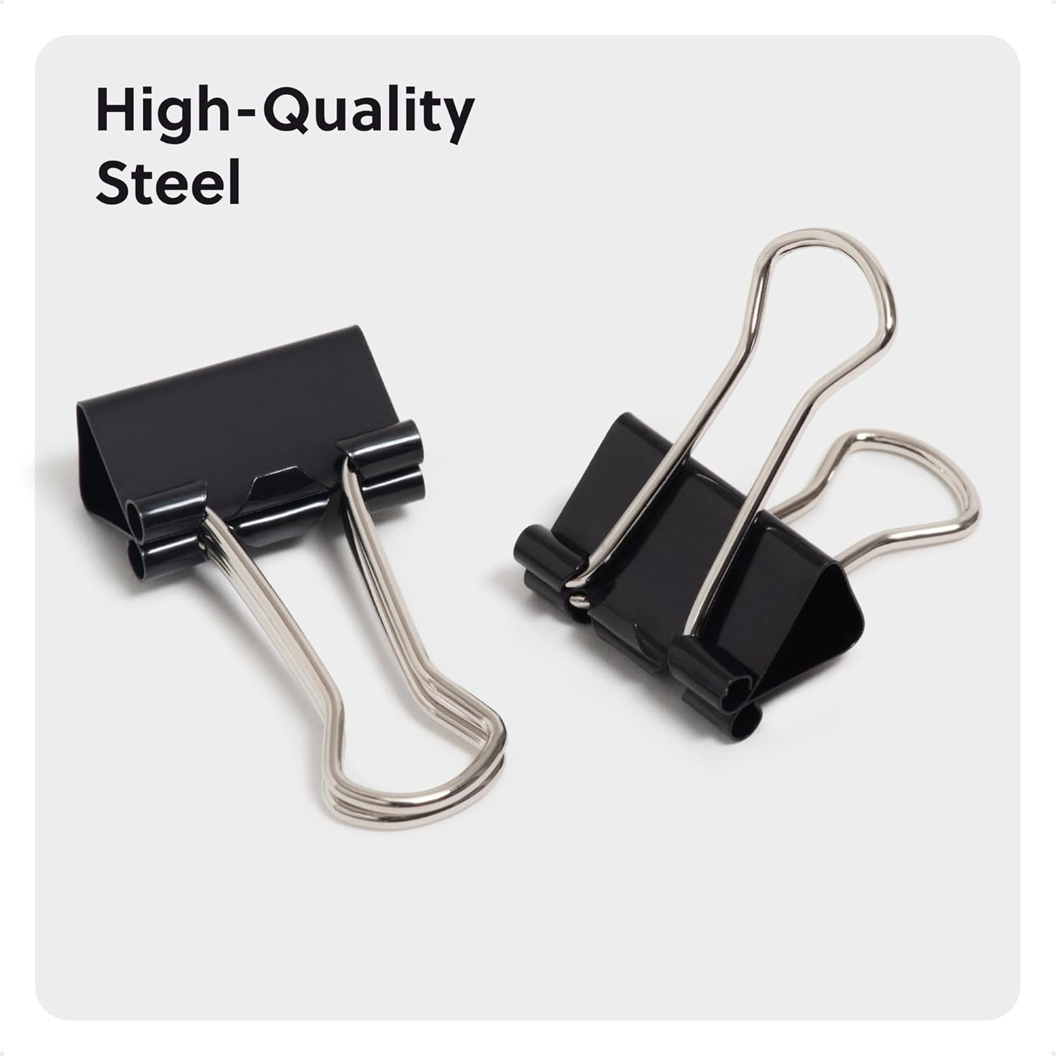U Brands Binder Clips, Small 3/4-Inch Width, 1/3-Inch Paper Holding Capacity, Black and Silver Steel, 144-Count - 653U08-24