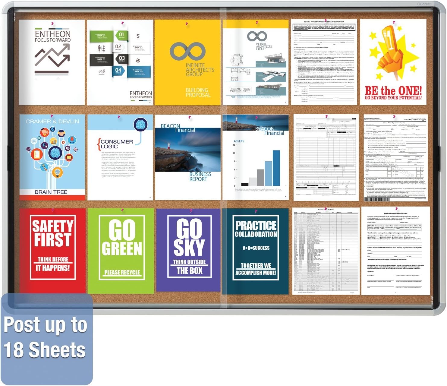 Quartet Enclosed Cork Bulletin Board, 56" x 39" or 18 Sheets, 2 Sliding Doors, Aluminum Frame (EISC3956)