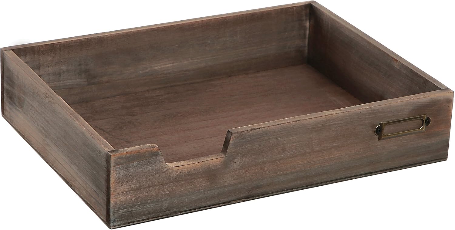 MyGift® Distressed Brown Vintage Wood Paper Tray, Office Desktop Document, File Folder, Magazine Holder Tray