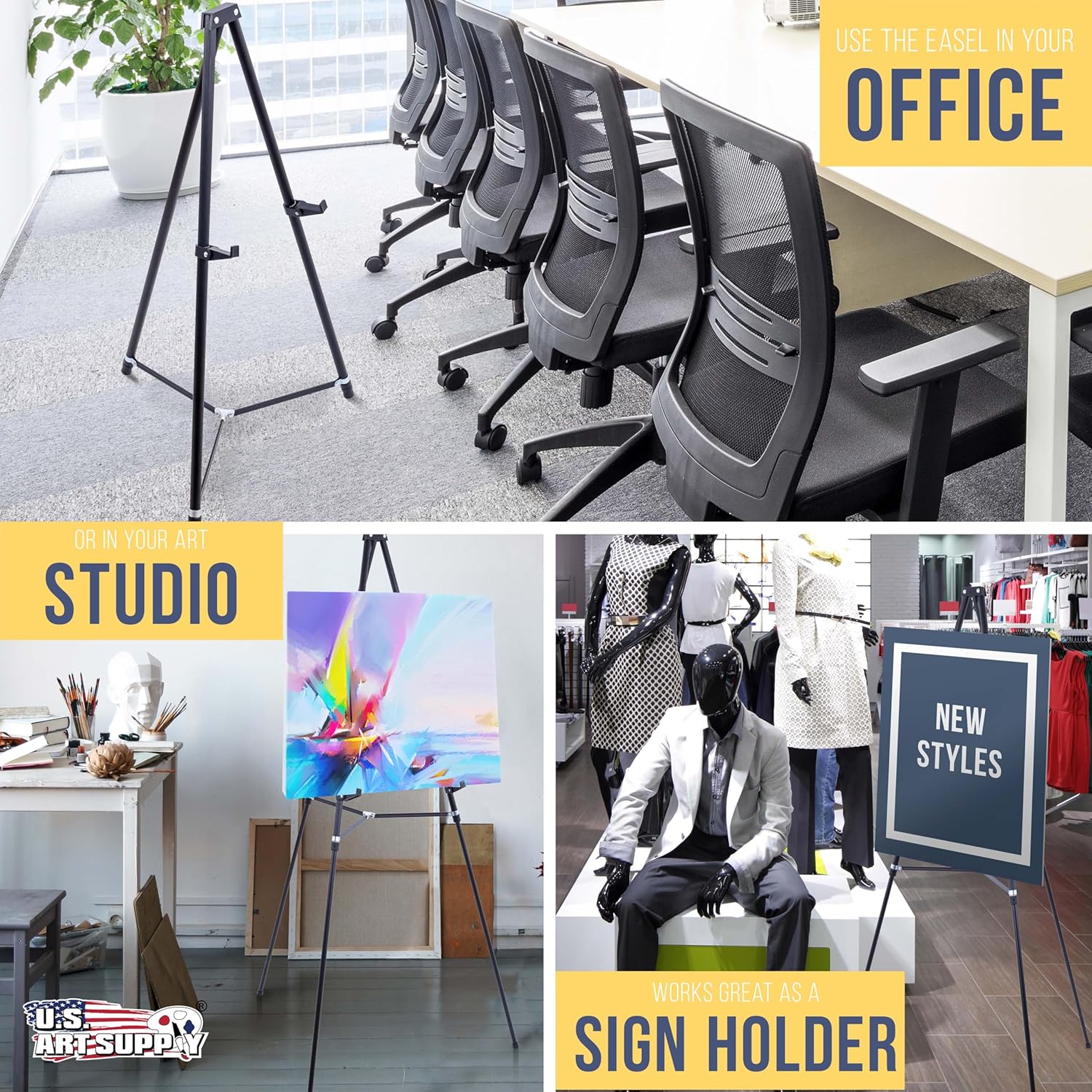 U.S. Art Supply 66" High Black Metal Display Art Easel (10 Pack) - Large Adjustable Height Portable Easel Stand, Sign Display, Holds 25 lbs - Floor & Tabletop Easels, Sign Stand