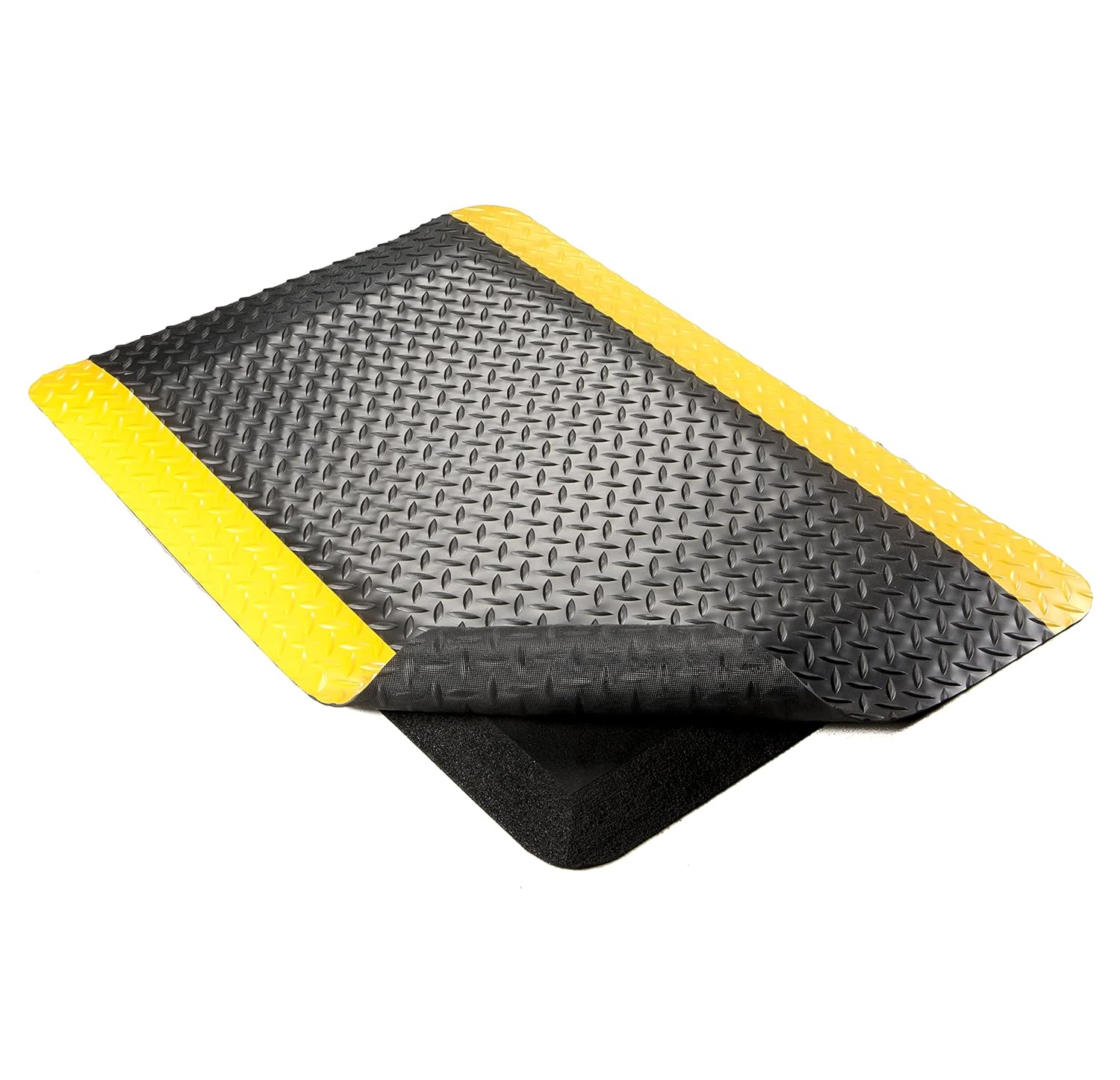 Wearwell 414.1516x4x27BYL Diamond-Plate SpongeCote UltraSoft Mat, 27' Length x 4' Width x 15/16" Thick, Black with Yellow
