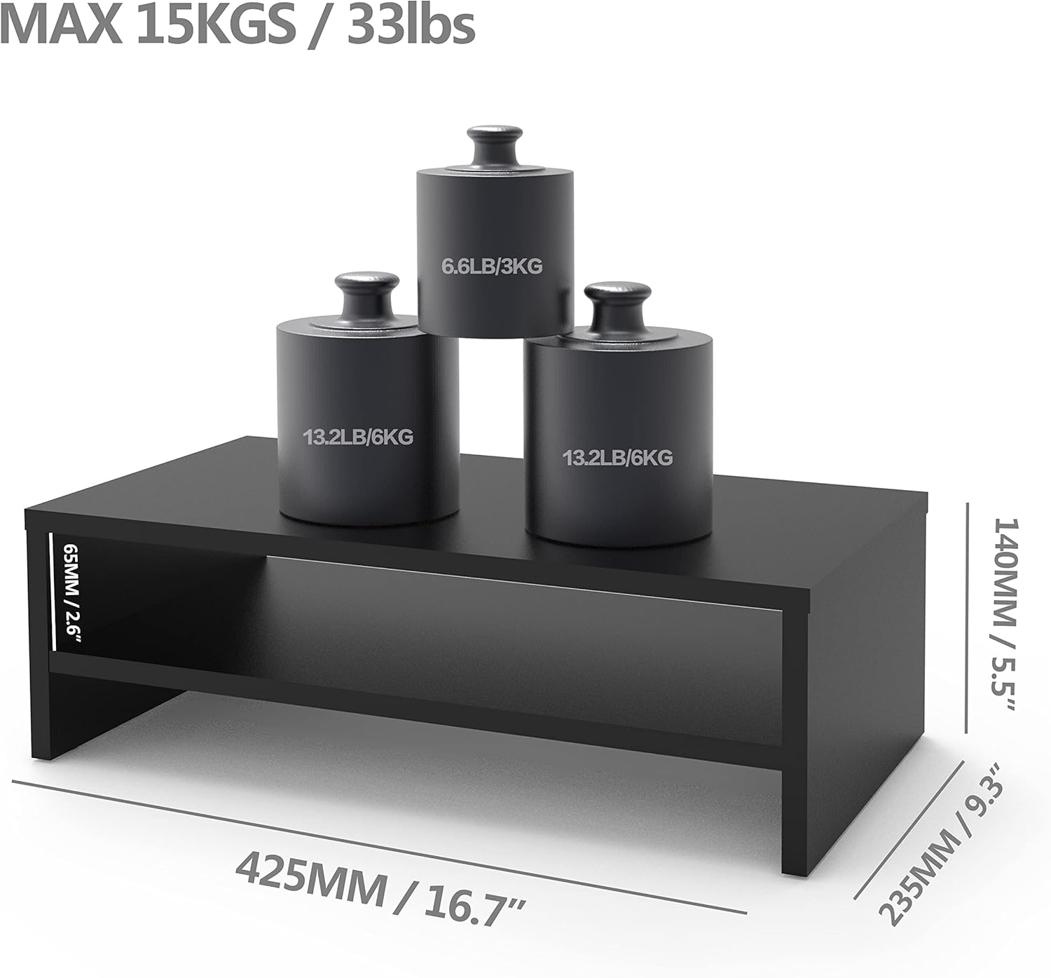 - 【Anti-slip Legs for Stable Stand】The laptop monitor stand is made of 15mm MDF for a beautiful appearance and easy to keep clean. Rubber skids on the bottom of the legs prevent the stand from sliding freely. Tough enough for printers, laptop, desktop or any other type of heavy equipment.