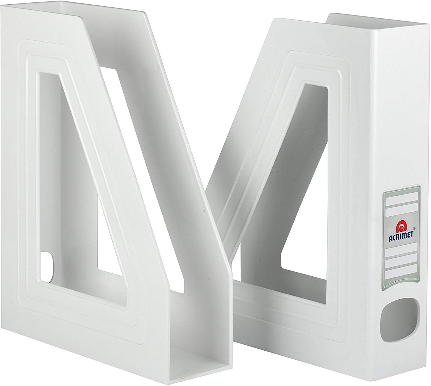 Acrimet Magazine File Holder, Durable Rack, Space-Saving Organizer (Plastic) (White Color) (2 pack)