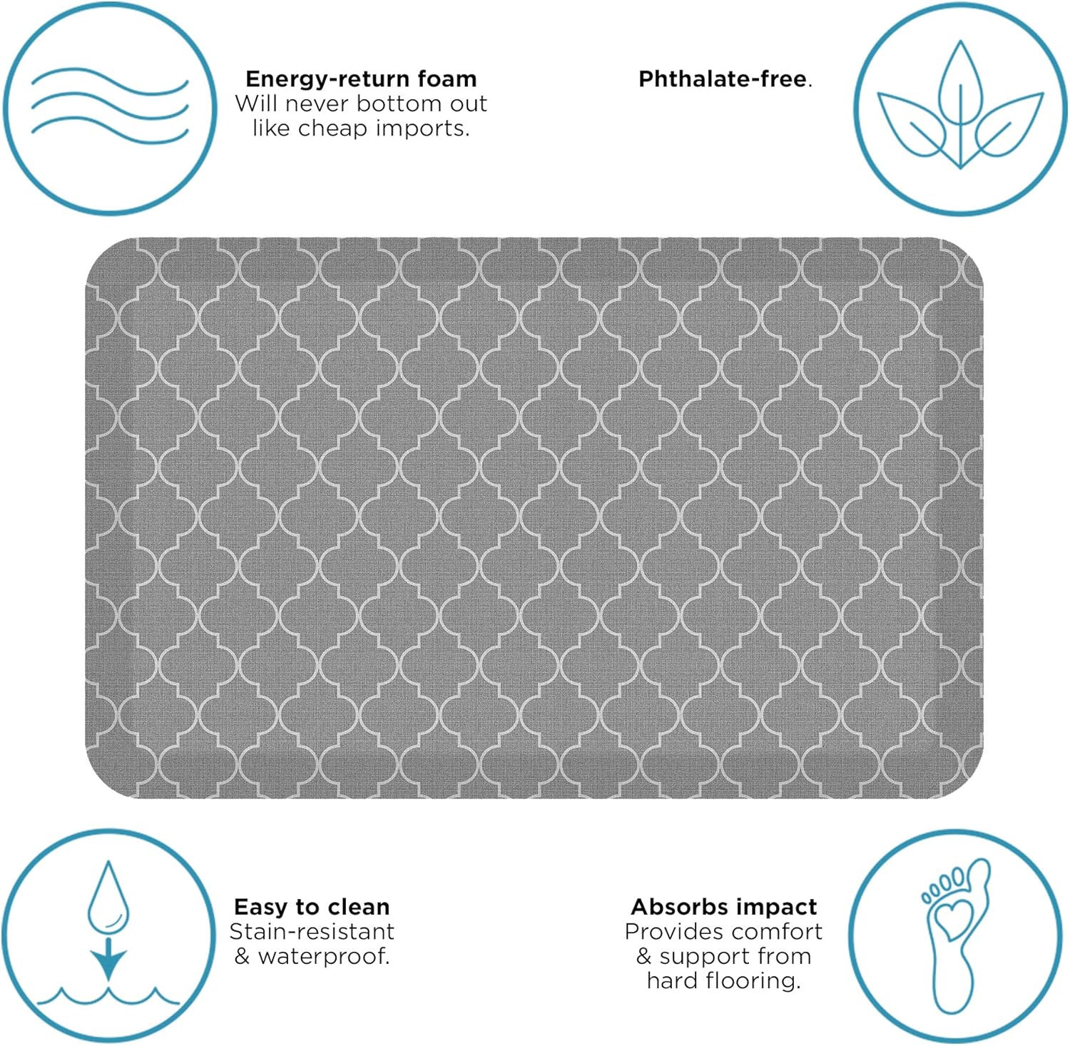 NewLife by GelPro Anti-Fatigue Designer Comfort Kitchen Floor Mat, 20x32”, Trellis Grey Resistant Surface with 3/4” Thick Ergo-Foam Core for Health and Wellness