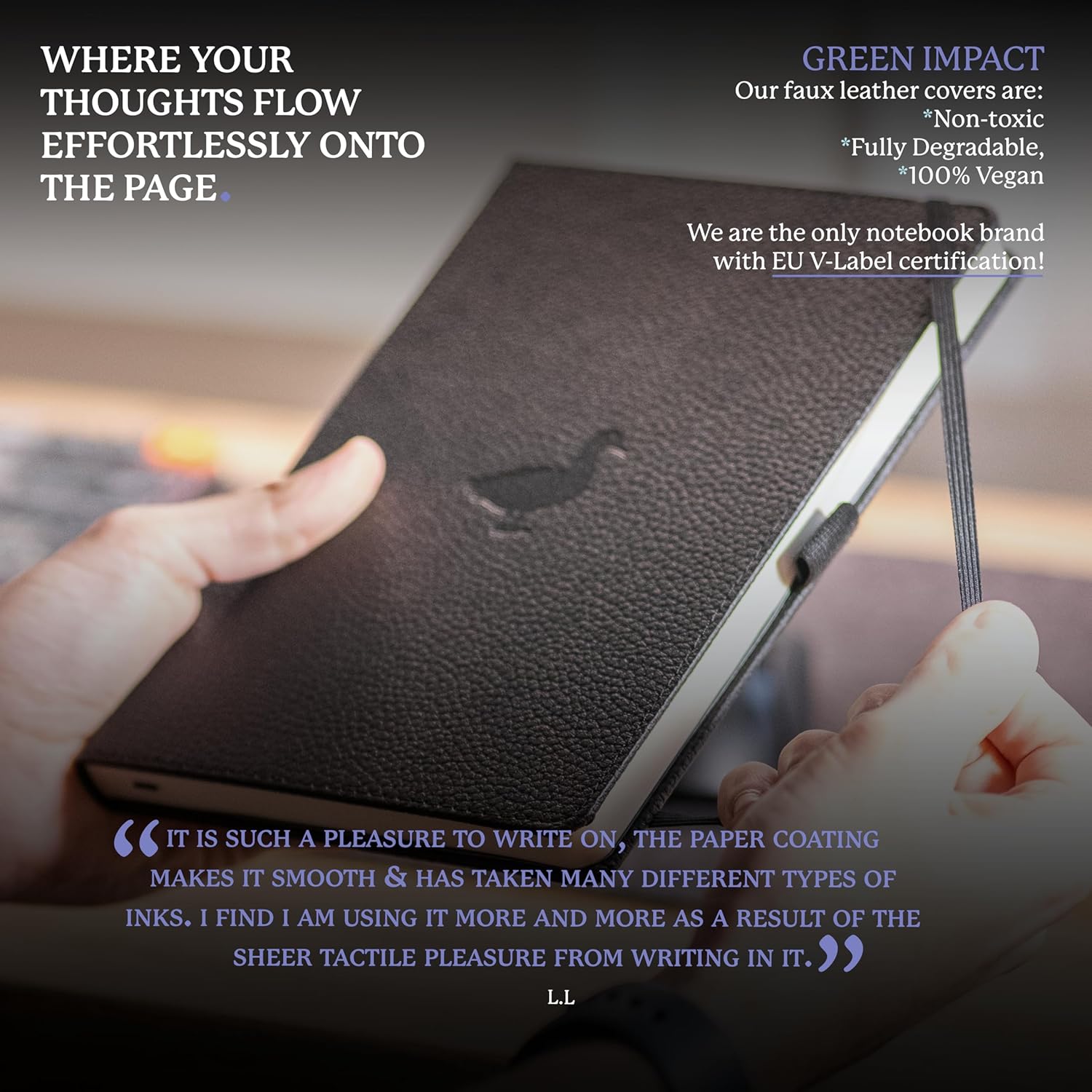 - HIGHEST-QUALITY WRITING PAPER: Dingbats Black Duck Medium A5 Notebook Journal has 192 pages-96 sheets of no bleed, smooth writing, Cream 100gsm, acid-free fountain-pen friendly, perforated plain paper in a flat lay design