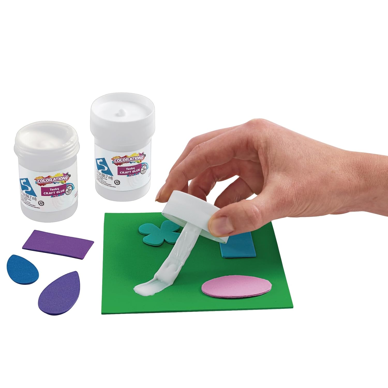 - CRAFY SUPPLY WITH MANY USES: Use Colorations tacky glue to glue all kinds of items! Use at school, home, and with arts and crafts projects. Makes gluing items such as feathers and foam easy.