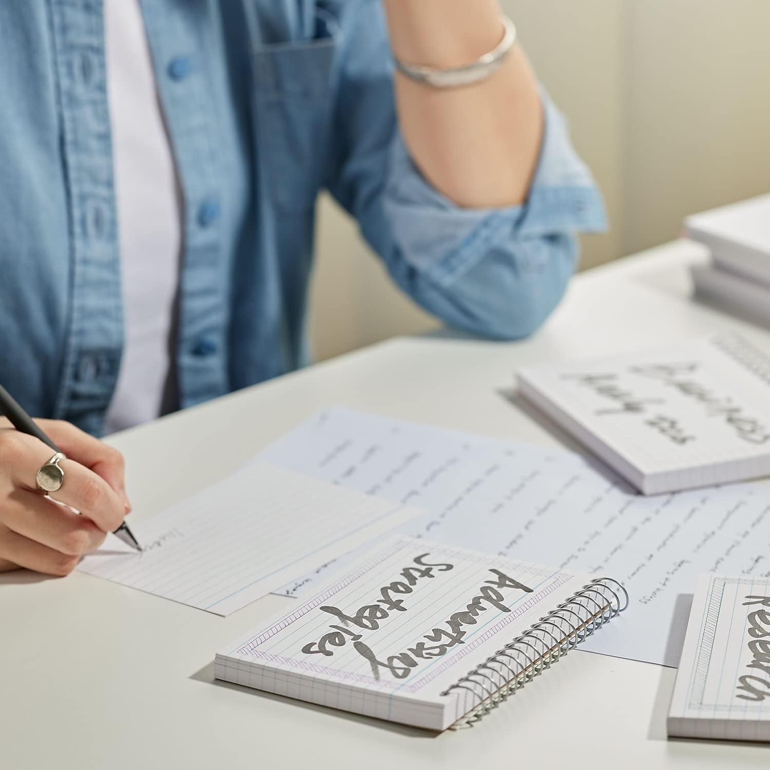 - White index cards. Spiral binding keeps cards in place.