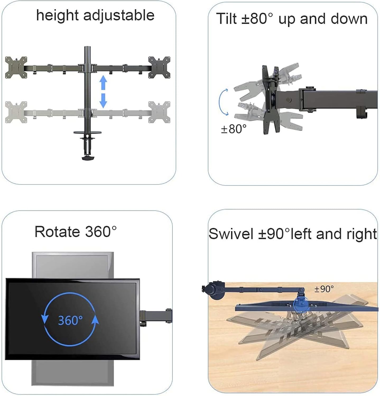 - Fully aticulation - Rotate 360°, tilt ±90° up and down, swivel ±90° left and right, height adjustment along the center pole.