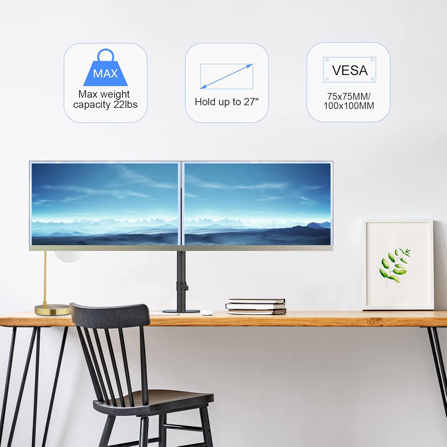 Suptek Monitor Mount, Adjustable Dual Monitor Arm Desk Mount Heavy Duty Monitor Stand fit for 27 inch Monitor Screens up to 22lbs,Black(MD9442)
