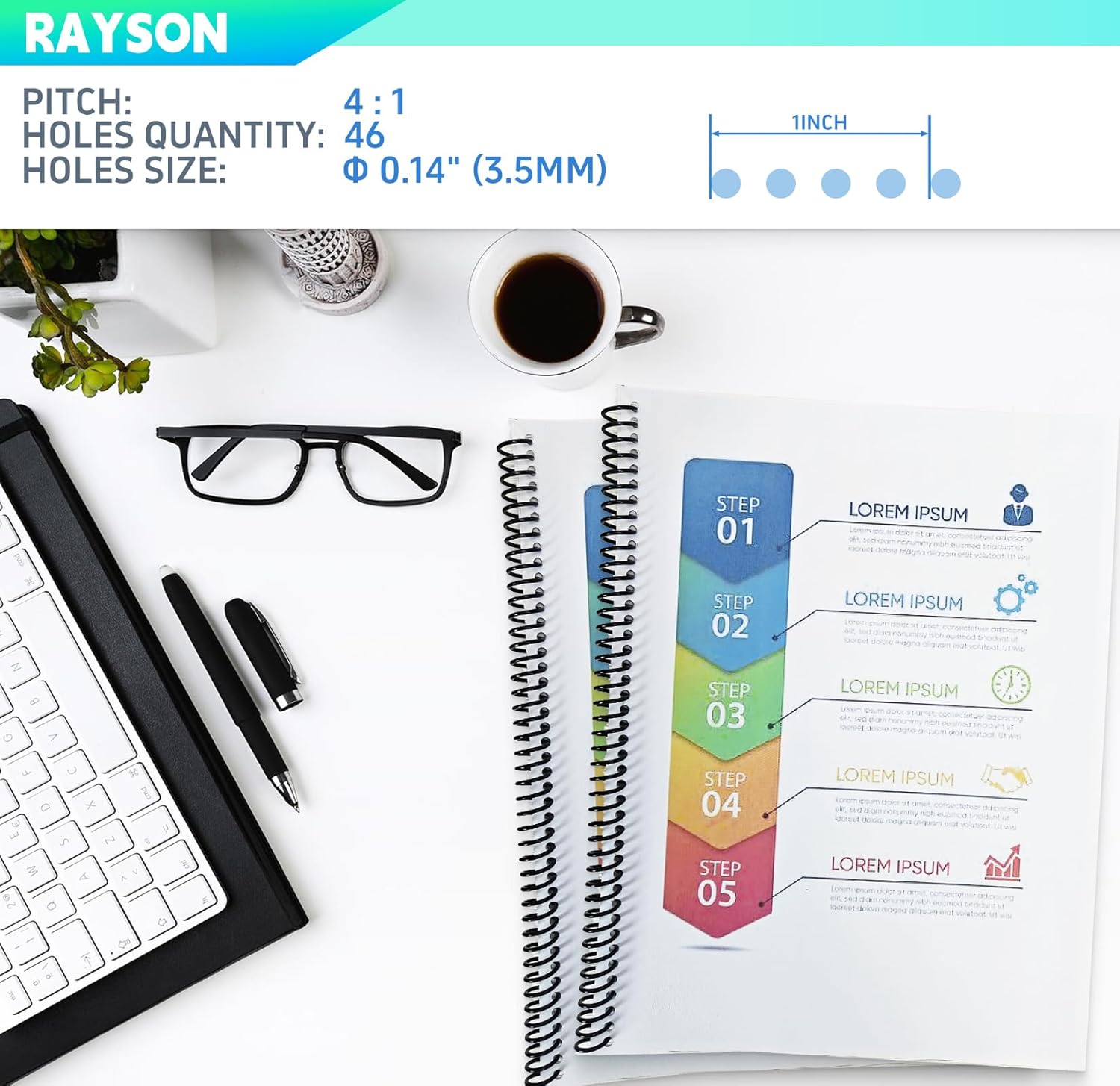 Rayson PD-1501 Coil Binding Machine with Electric Coil Inserter - Professionally Bind Presentations Documents, 4:1 Pitch with 46 Round Holes Spiral Binder