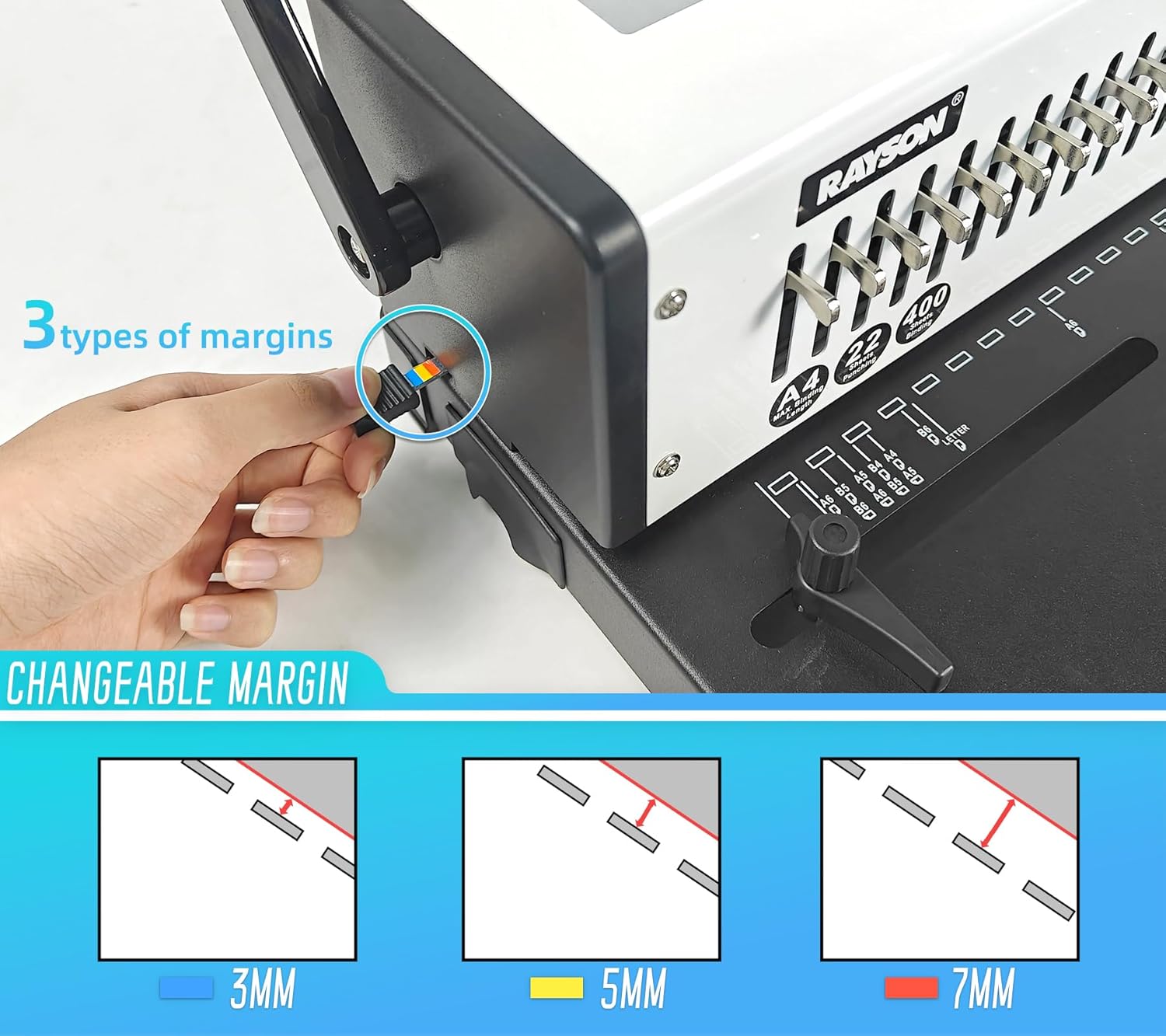 - 【High Capacity Punching & Binding】Punch up to 22 sheets (A4, letter size, or below) of 80gsm (20lb) paper at once and bind up to 400 sheets with 2" (51mm) comb spines