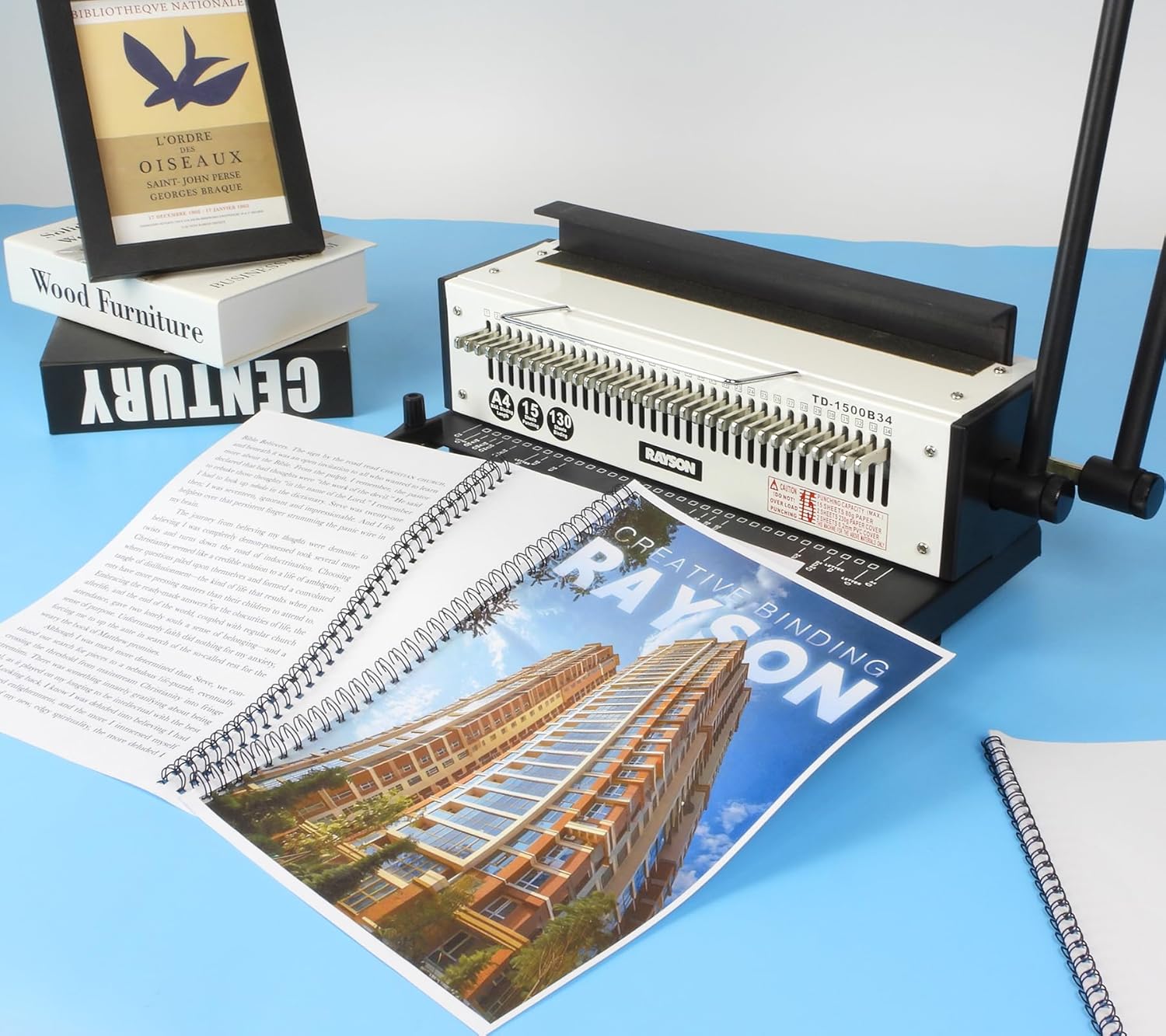 Rayson TD-1500B34 Binding Machine, Square Size Holes, 3:1 Pitch Wire-O Binder Punch 15 Sheets/Bind 130 Sheets with Sturdy Metal Construction