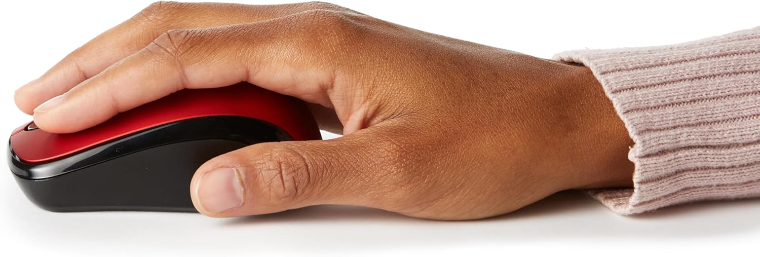 Amazon Basics 2.4 GHz Optical Wireless Mouse for Laptop and Computer, USB Nano Receiver, Red