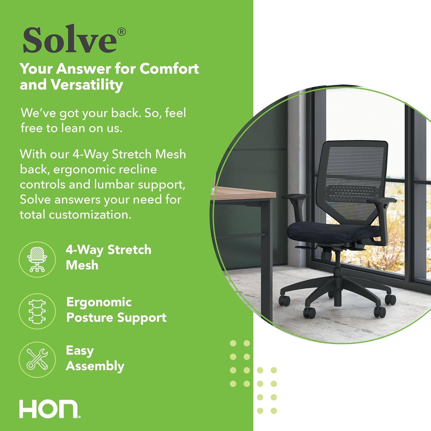 HON Solve Task Chair, Ergonomic Office Chair Mesh Back Support, Adjustable Lumbar, with Wheels, Height-Adjustable Arms, for Computers, Desks, Home Office, Black