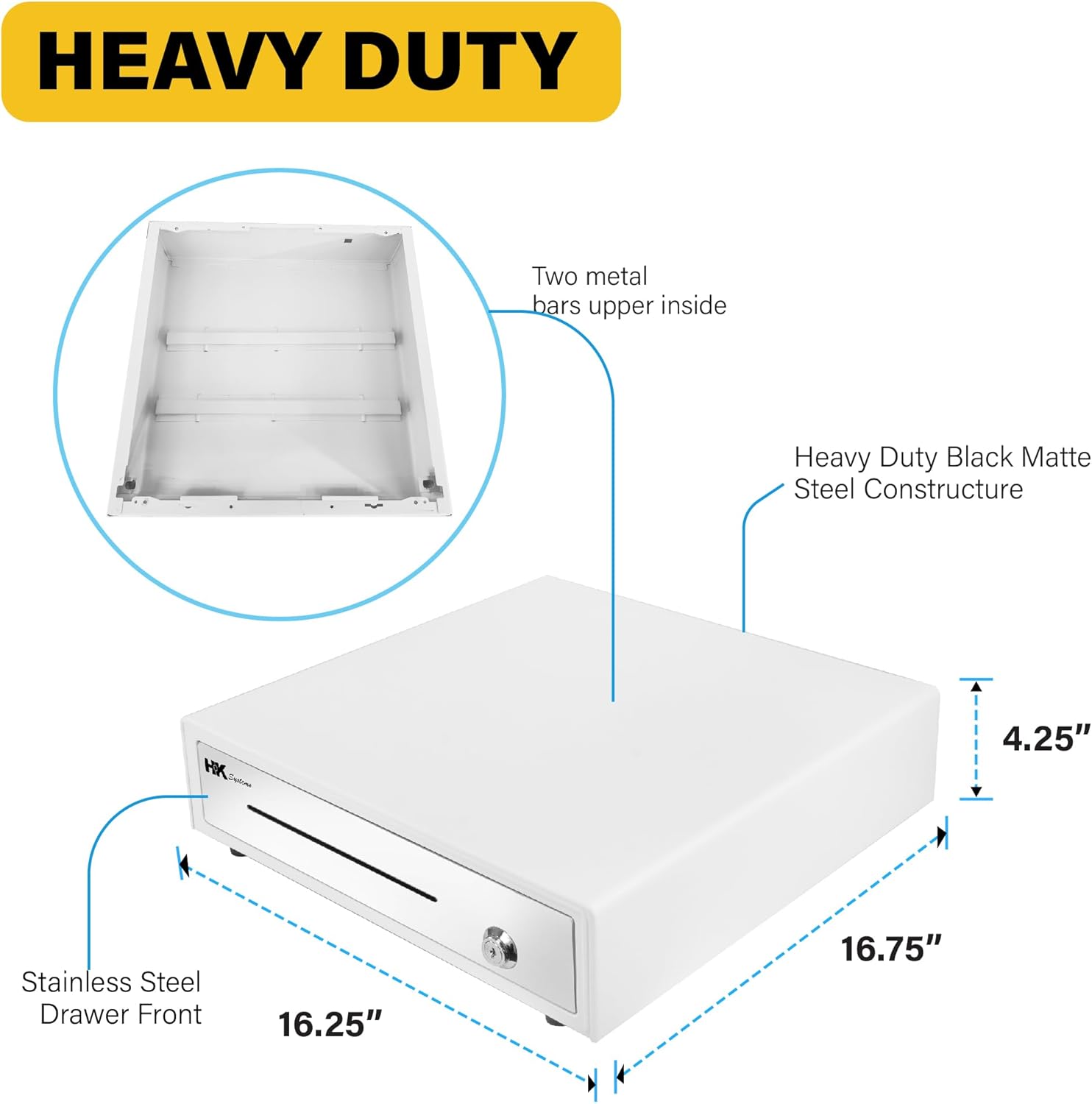 HK SYSTEMS 16inch "Stainless Steel" Front White Heavy Duty POS Interface Cash Drawer with 5Bill/5Coin