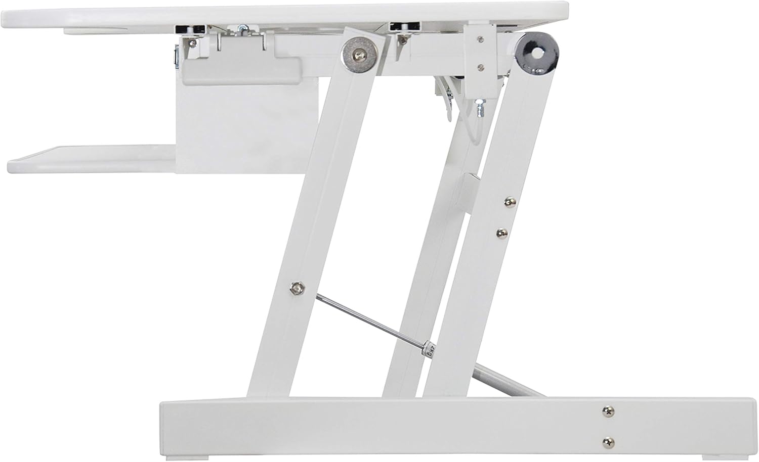 Rocelco 37.5" Deluxe Height Adjustable Standing Desk Converter - Quick Sit Stand Up Dual Monitor Riser - Gas Spring Assist Computer Workstation - Large Retractable Keyboard Tray - White (R DADRW)