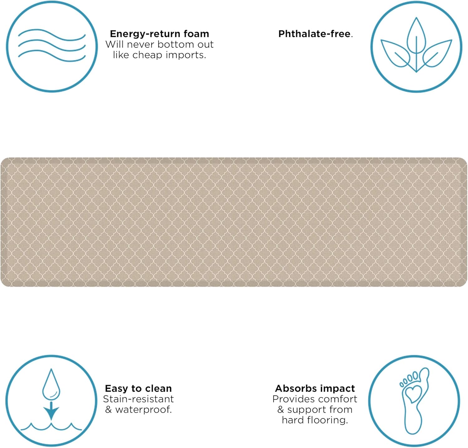 NewLife by GelPro Anti-Fatigue Designer Comfort Kitchen Floor Mat, 30x108" , Trellis Khaki Stain Resistant Surface with 3/4” Thick Ergo-foam Core for Health and Wellness