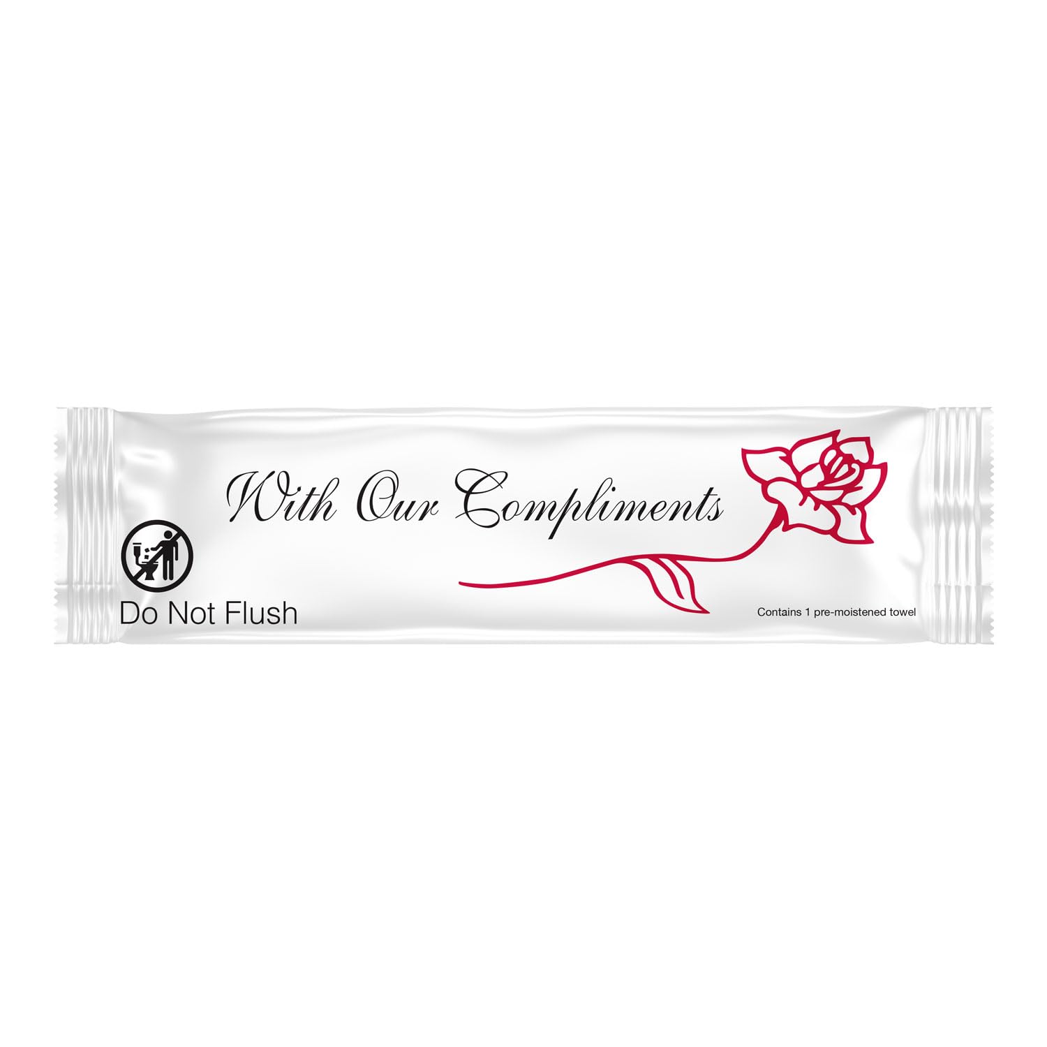 Diamond Wipes Pre-moistened Hand Wipes - “With Our Compliments” Logo 10x8” Extra Thick Lemon-Scented Pack of 500 Individually Wrapped Wet Wipes