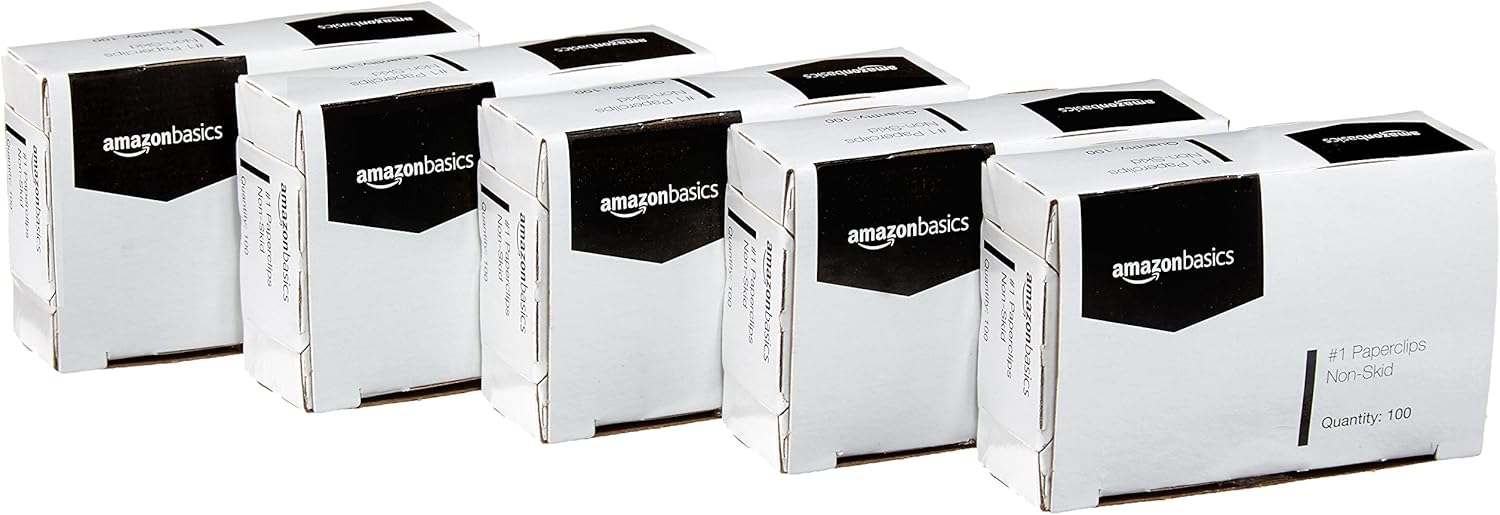 Amazon Basics No. 1 Paper Clips, Nonskid, 1000 Count (10 Pack of 100), Silver