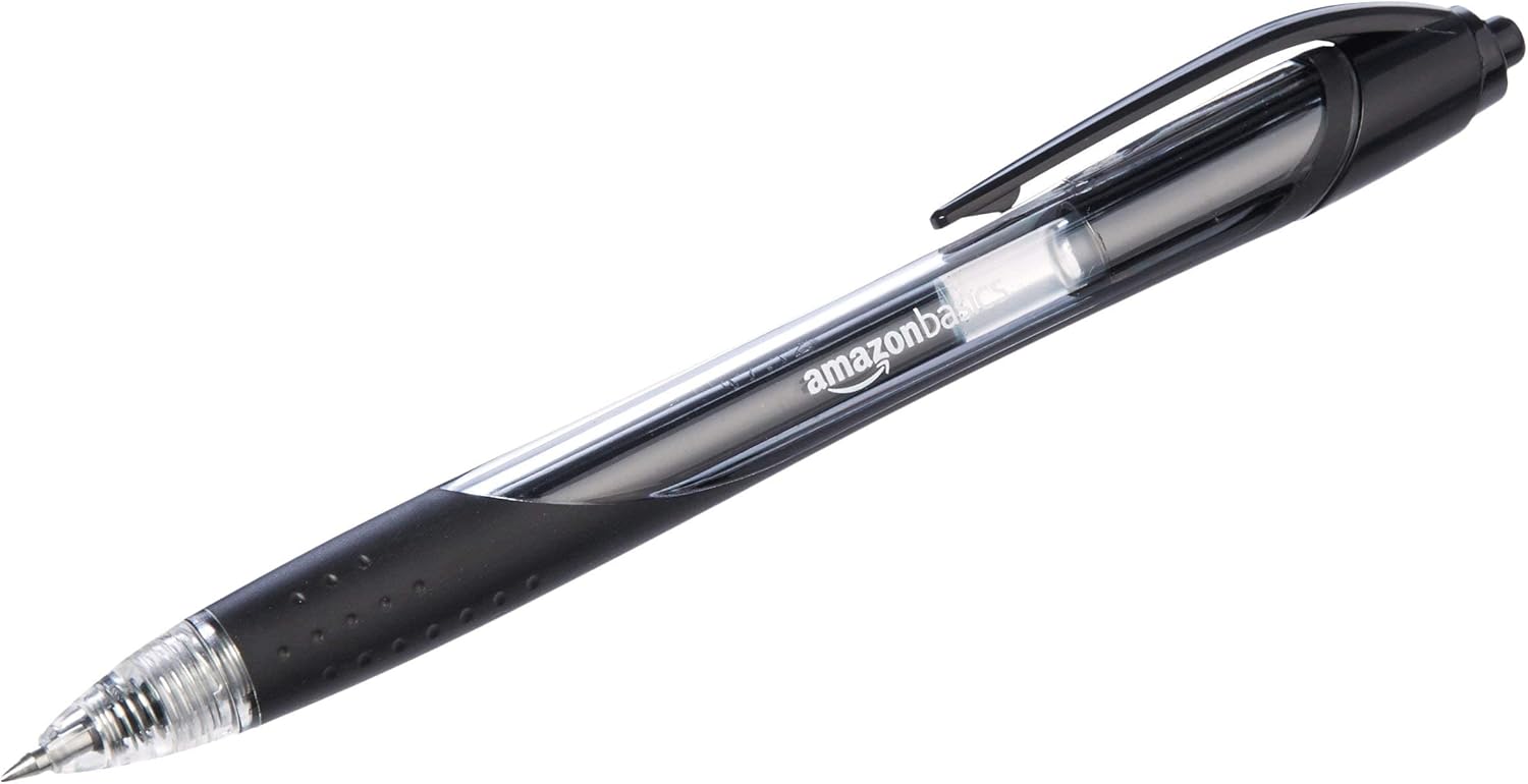 Amazon Basics Retractable Gel Ink Pens, Fine Point, Smooth Writing, Black, 12-Pack