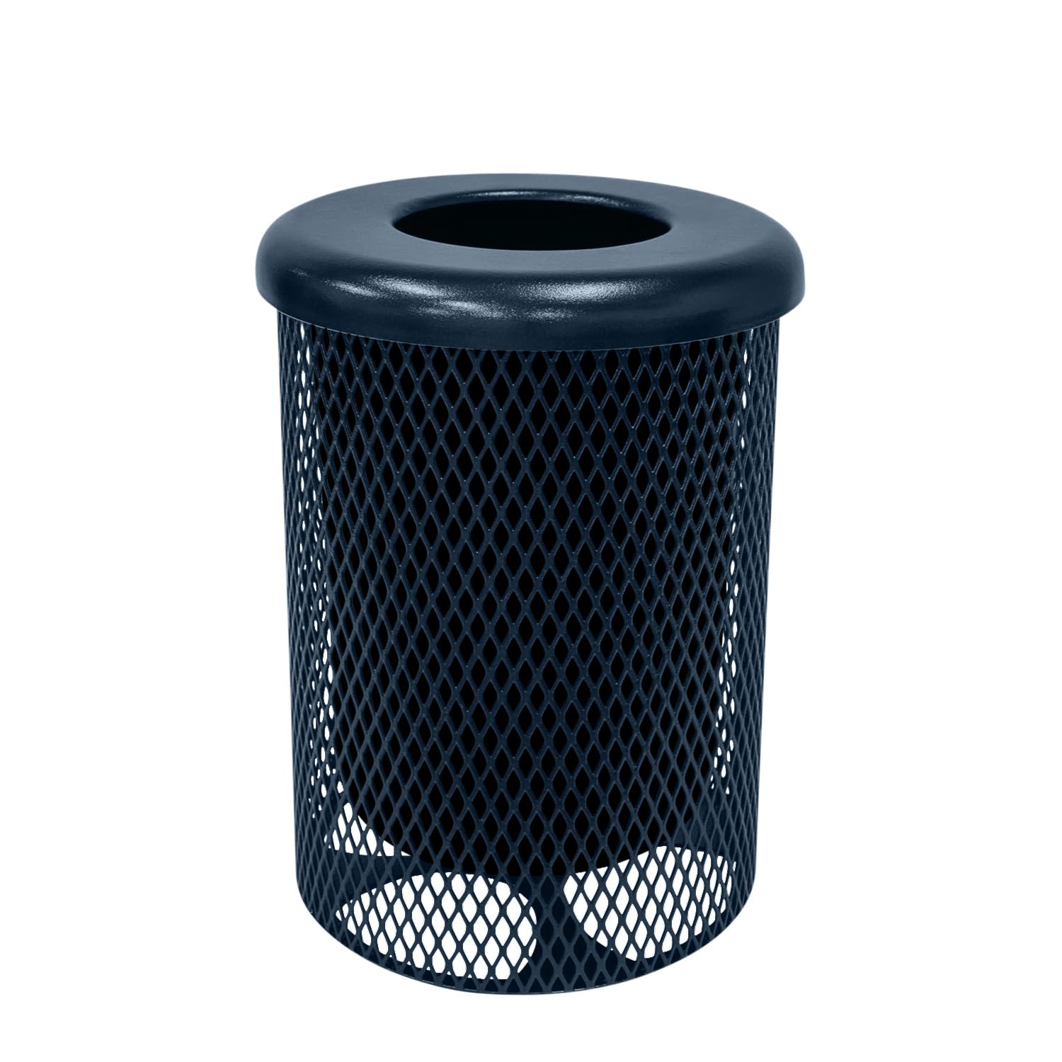 RFT-DBL Heavy Duty 32 Gallon Round Trash Receptacle, Liner Included, Dark Blue with Flat Top, Made in America