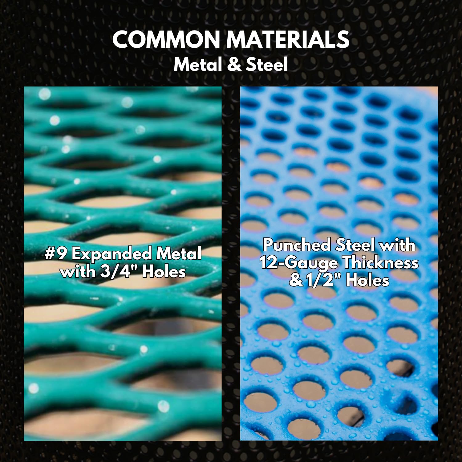 - UNIQUE POLYETHYLENE COATING: We exceed numerous industry standards with our unique coating system that has the highest adhesion rating on the market. Our thick coating is scratch-resistant & won't peel or crack. Our expanded metal & punched steel styles reduce dirt & moisture buildup.