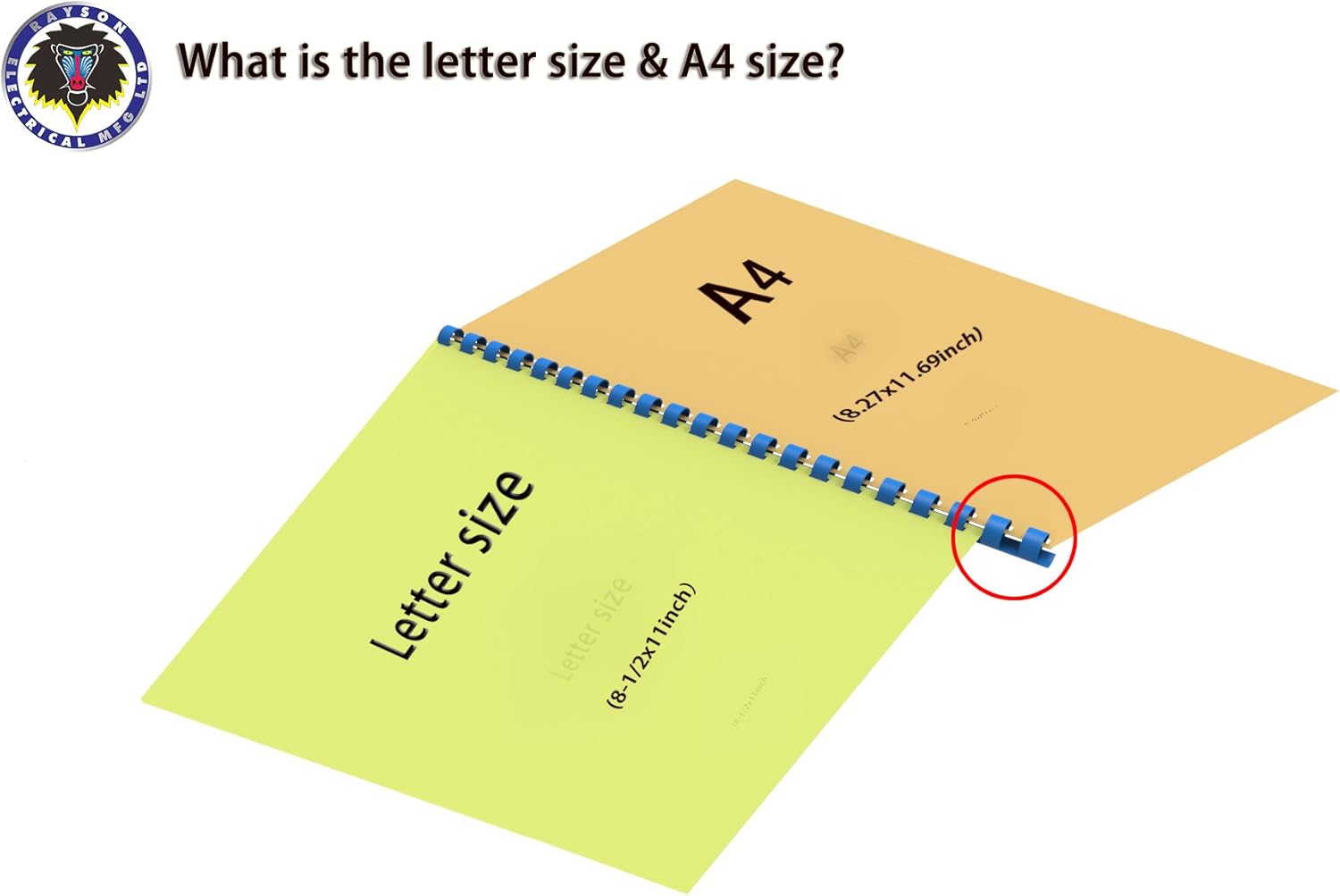- The 21 hole comb binding ring fits A4 sized paper (8.3 x 11.7inches), which is not a standard U.S letter paper size (8.5 x 11inches). Binding letter size need to use the scissor to cut off two rings. The picture shows the difference between A4 and letter size paper.
