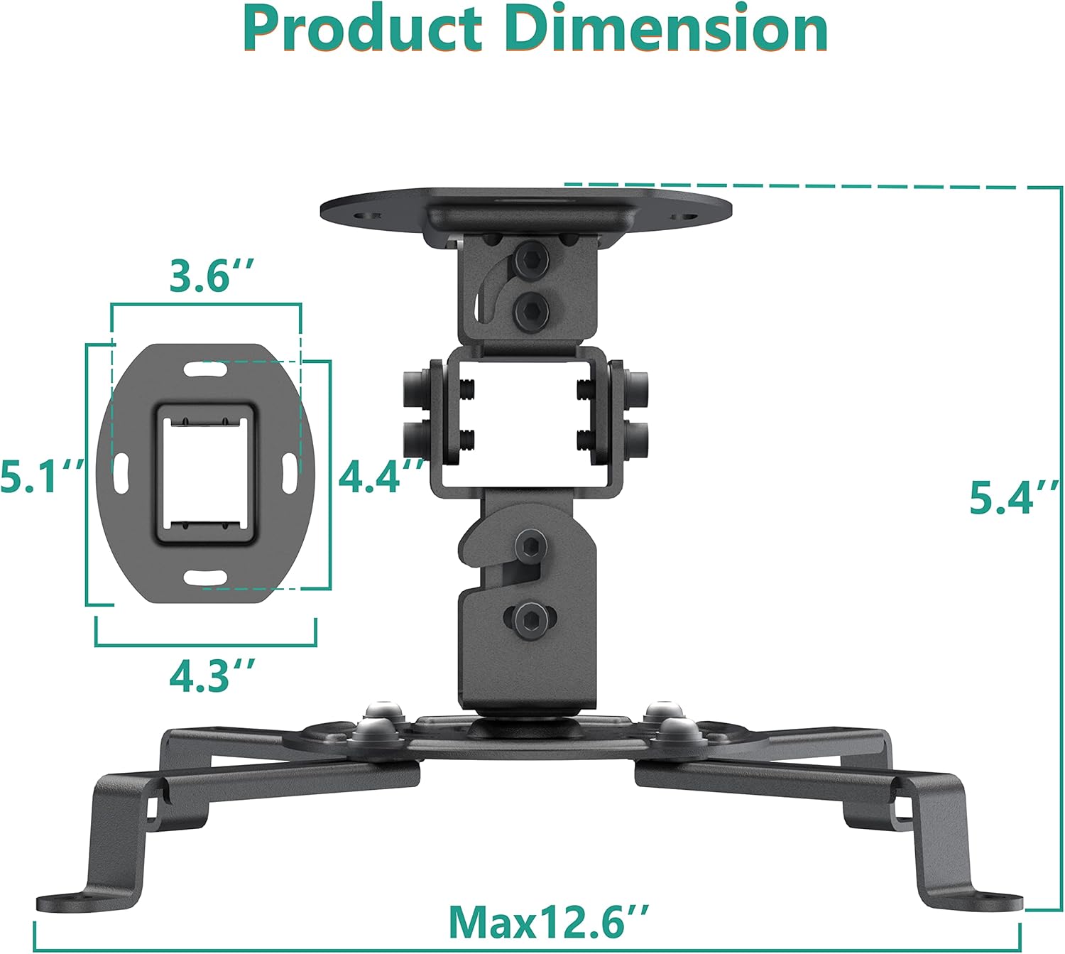 - Compatibility: Projector mount fit most of the projector in the market, applicable to distance mounting holes between 2" to 12.5”.