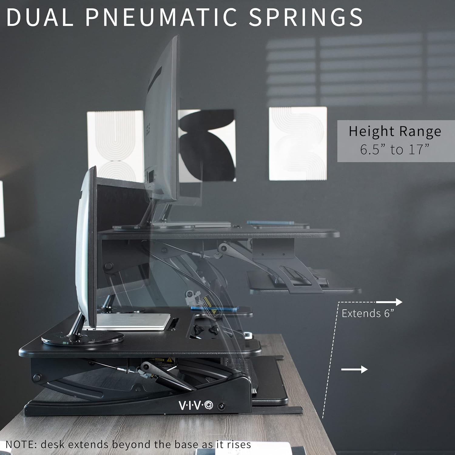 VIVO 36 inch Height Adjustable Stand Up Desk Converter, V Series, Quick Sit to Stand Tabletop Dual Monitor Riser Workstation, Black, DESK-V000V