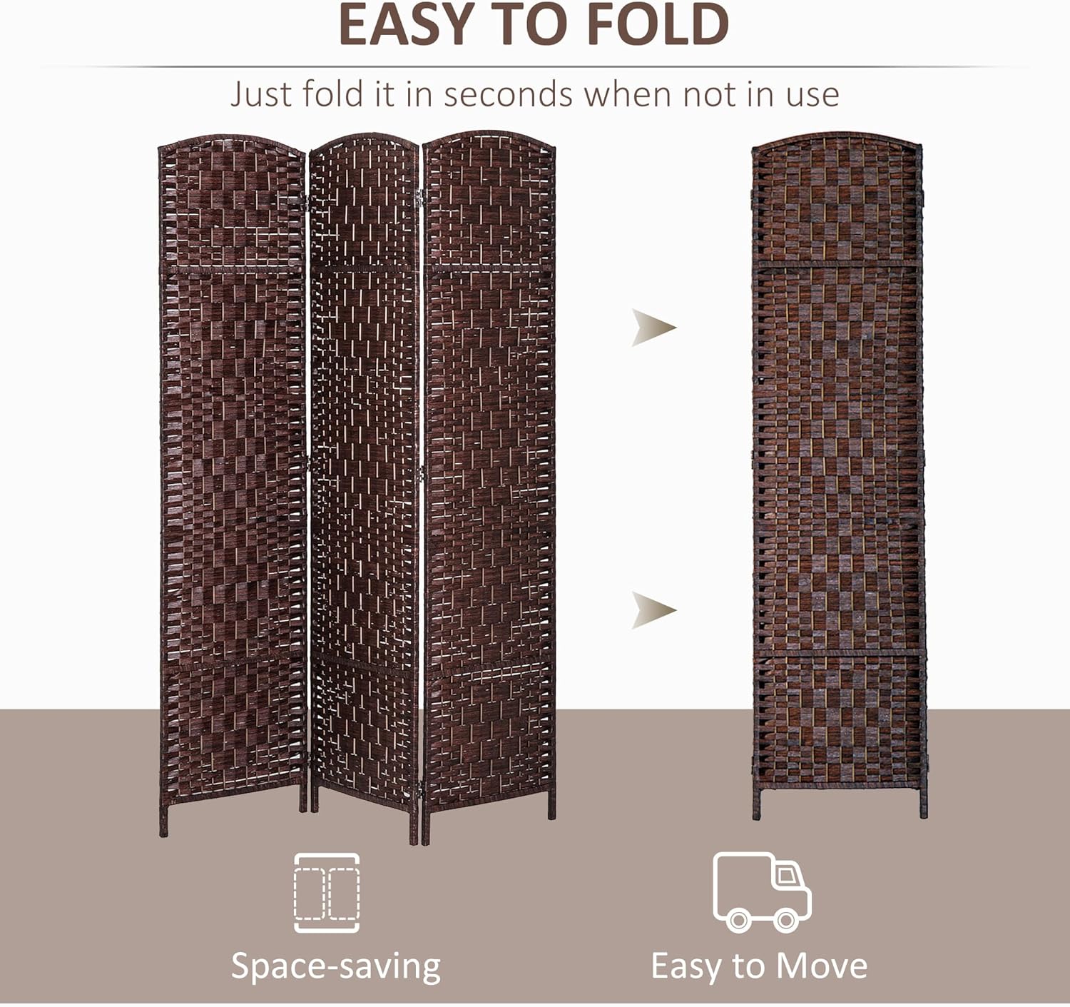 HOMCOM Room Divider, 3 Panel Folding Privacy Screen, 6FT Tall Portable Wicker Weave Partition Wall Divider for Bedroom, Home Office, Brown