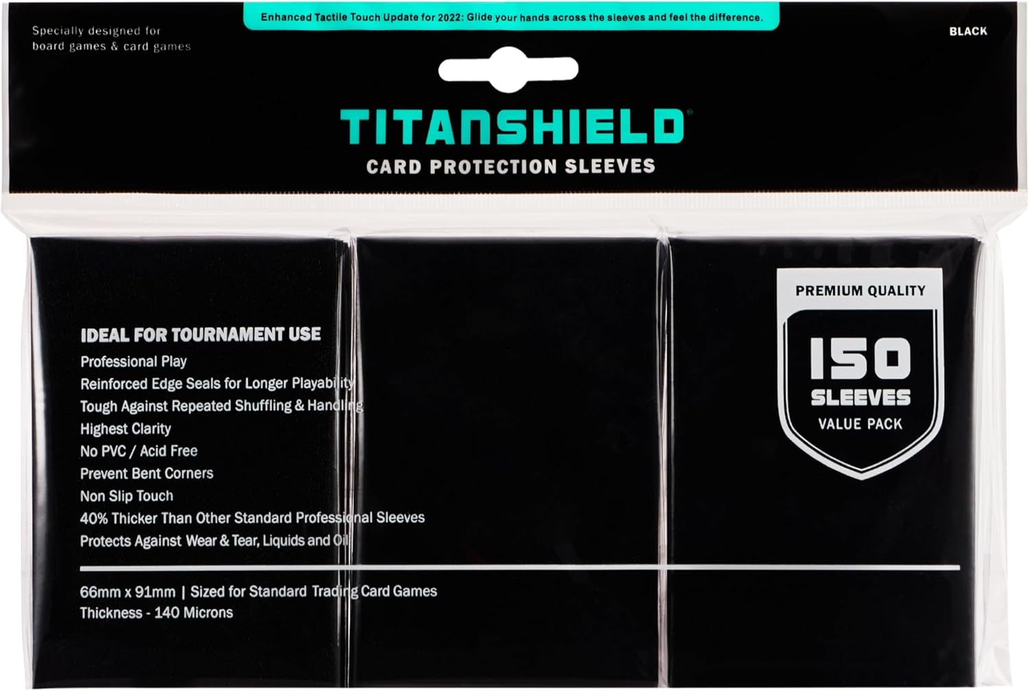 TitanShield (150 Sleeves, Black) Compatible with Standard Sized Board Games, MTG Magic The Gathering, Pokemon, Lorcana and Trading Cards 2.5" x 3.5" 66x91mm
