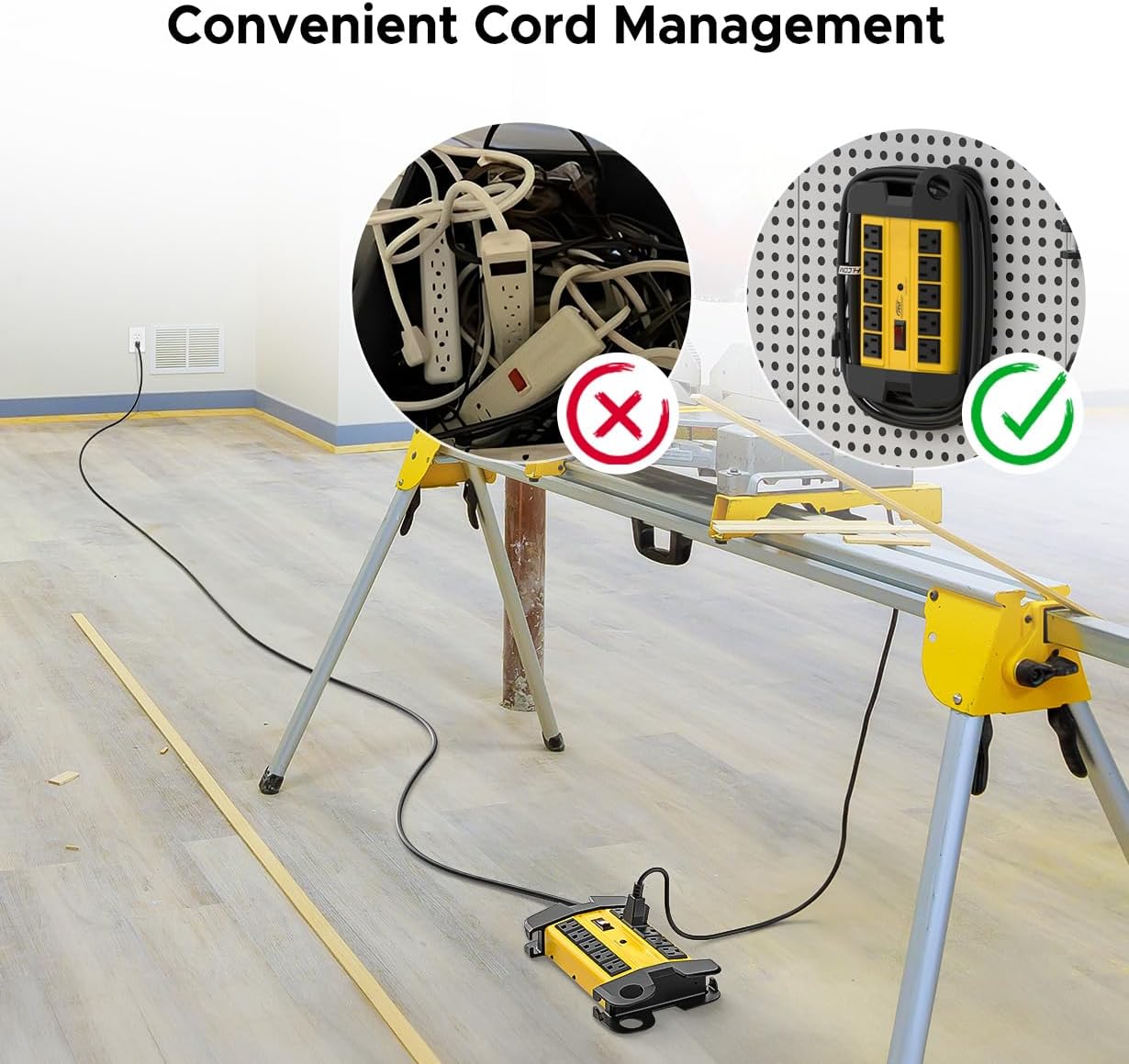 - --Cord holder design can wrap 15 feet cord easily around the power strip , hanging hole can help with storage