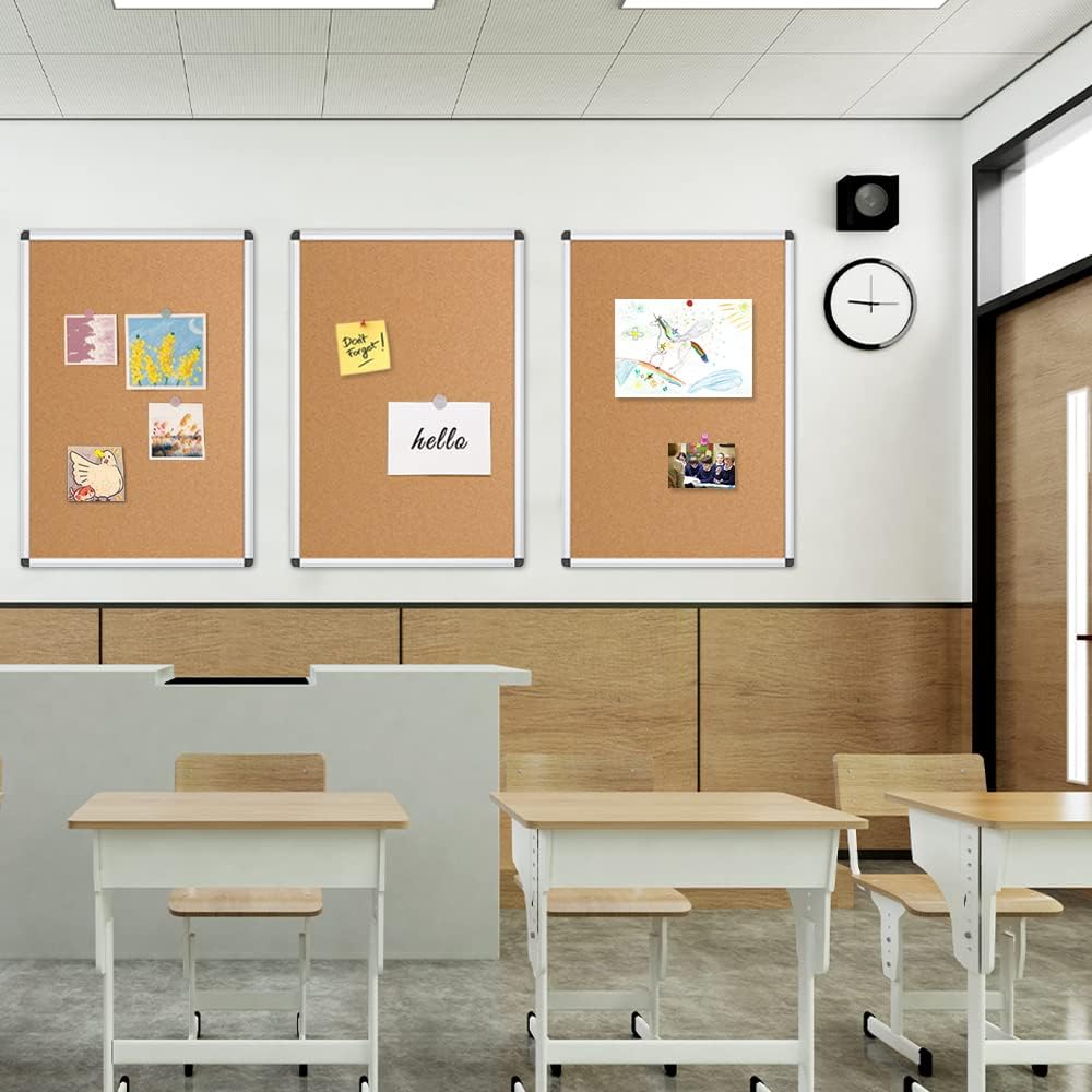 VIZ-PRO Cork Notice Board, 48 X 24 Inches, 3 Pack, Silver Aluminium Frame