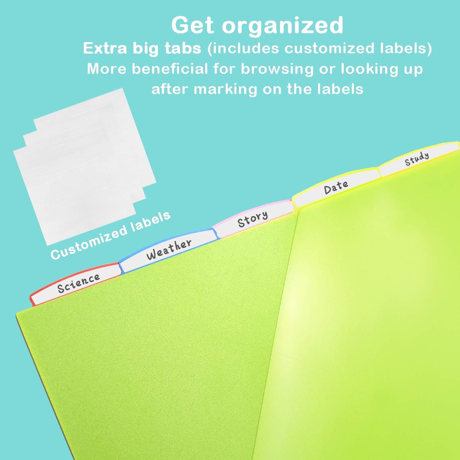 - Clear Front Pocket: Each tabs divider features one clear pocket, great to collect your loose paper and text. Insertable pockets are also easy for put in and take out