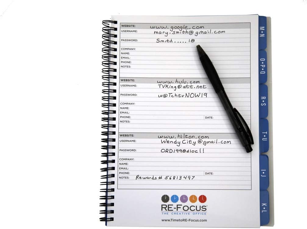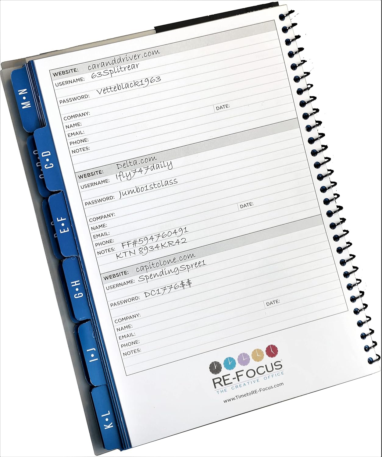 Password Book Keeper, Pink, Alphabetical Tabs, Spiral Bound, Removable Sheets, Journal Organizer Includes Website, Address, Username, Password - 10" x 7.5" by Re-Focus The Creative Office